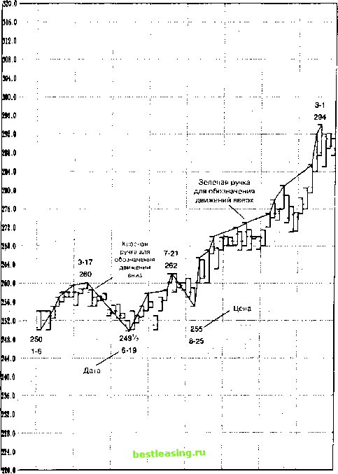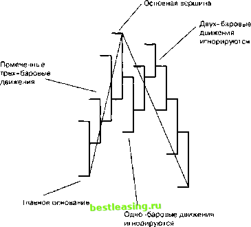 6 Графики индикатора основной тенденции После изучения графика промежуточной тенденции и некоторых его недостатков аналитик может перейти к графику основной тенденции. Уяснив сложности использования графика малой тенденции и убедившись в сравнительной простоте применения графика промежуточной тенденции, трейдер, возможно, захочет разработать индикатор, обеспечивающий долгосрочный обзор рынка. В то время, как индикатор малой тенденции является самым активным, а за ним следует индикатор промежуточной тенденции, индикатор основной тенденции является наиболее стабильным, однако не обязательно лучшим с точки зрения конечной цели - получения прибыли. График малой тенденции включает слишком большое число случайных изменений в тенденции, что чревато высокими издержками при торговле. В противоположность ему, график основной тенденции имеет значительно более низкие значения торговых издержек, с точки зрения комиссионных, но при его использовании весьма вероятны потери из-за упущенных возможностей. Лучше всего применять этот график в сочетании с графиком промежуточной тенденции. Например, с помощью графика основной тенденции определяется бычий рынок, но для определения возможности покупок лучше использовать график промежуточной тенденции, прослеживая по нему коррекции. Аналогично, на медвежьем рынке, определенном с помощью индикатора основной тенденции, лучше всего следовать за индикатором промежуточной тенденции, чтобы войти в рынок, используя корректировочные движения. К построению графика основной тенденции нельзя относиться безответственно, так как основной тренд любого рынка для трейдера должен иметь первостепенную важность. Для того, чтобы провести качественный анализ рынка и успешно торговать, аналитик должен построить графики всех трех тенденций - основной, промежуточной и малой. Колебания краткосрочных графиков являются частью колебаний долгосрочных графиков. Поскольку каждый отдельный график имеет свои преимущества и недостатки, их комбинация принесет больше пользы в процессе торговли. Лучший способ применять эти графики - значит торговать в направлении основной тенденции, используя график промежуточной тенденции для входа и выхода из рынка по направлению основной тенденции. Наиболее решительные трейдеры могут использовать еще и график малой тенденции для размещения ордеров на покупку или продажу в направлении, указываемом промежуточной и основной тенденциями. Не используйте только один график как единственный источник информации. Необходима именно комбинация графиков, чтобы уточнить направление основной тенденции. Правильно построив ![]() Рис. 6.1 Базовая конструкция графика индикатора основной тенденции график основной тенденции, трейдер всегда будет иметь перед собой картину, отражающую каждую основную вершину и каждое основное основание, а также дату их появления (рис. 6.1). Кроме того, трейдер сможет определять, когда наблюдались изменения основного тренда, а также продолжительность колебаний с точки зрения как цены, так и времени. При помощи этой исходной информации можно разработать простую и эффективную торговую систему. ОПРЕДЕЛЕНИЕ Поскольку график основной тенденции может быть использован при определении основных вершин и оснований для любого периода времени, то во избежани