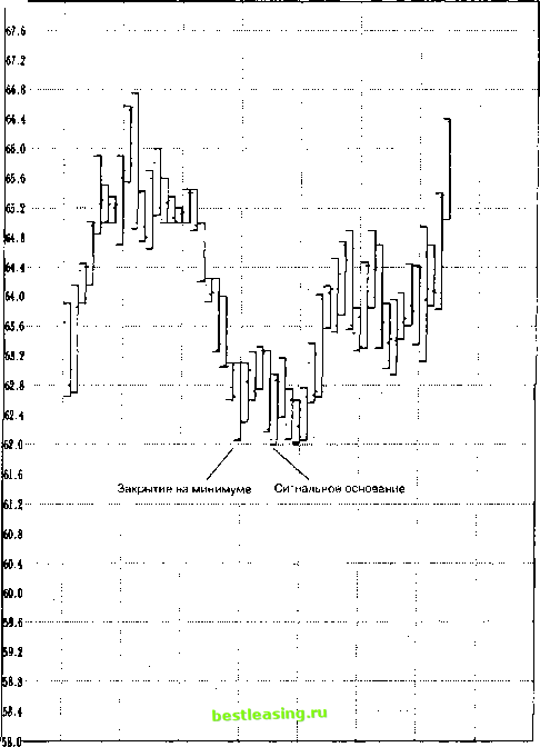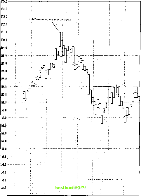лв.о ![]() 5/10/96 7/5/96 8/30/96 10/25/96 12/20/96 2/14/97 4/11/97 6/6/97 8/1/97 Рис. 7.25 График, показывающий закрытие возле минимума. Несмотря на закрытие недели на минимуме, рынок начал подъем. Последнее основание было сигнальным основанием. ![]() 150.0 12/3/96 12/13/96 12/26/96 1 /8/97 1/20/97 1/30/97 2/11 /97 2/21/97 3/5/97 Рис. 7.26 График, показывающий закрытие возле максимума. Низкое открытие после закрытия возле максимума не меняет тенденцию, но является существенным признаком того, что рынок готовится изменить направление и начать движение вниз. тия тенденции или строит зону сопротивления. Эти формации вершин заслуживают внимания, поскольку выдают достоверный и точный прогноз. ЗАКЛЮЧЕНИЕ Многие трейдеры мечтают о системах, доводящих до автоматизма торговлю в тенденции. Некоторые обстоятельства помогают трейдеру извлечь максимальную прибыль от торговли и уменьшить риск до минимума. Полагаю, что это и есть исключения из правил по индикатору тенденции. Поглощенный искусством торговли исключительно на индикаторе тенденции, трейдер должен осознать, что успешная торговля включает в себя также и создание стратегических шагов. Способность к распознаванию определенных сигналов, таких как двойная вершина или двойное основание, длительное движение в цене, равновесие колебаний, сигнальная вершина или сигнальное основание, серьезно помогает трейдеру определить предстоящие изменения в тенденции еще до того, как активизируется индикатор тенденции. На этом заканчивается глава о графических моделях, являющихся исключениями из правил по графику колебаний. Изучая как график, так и исключения, обратите особое внимание на то, что сигнальные вершины и сигнальные основания появляются, в большинстве своем, как главные вершины и основания. 1 2 3 4 5 6 7 8 9 10 11 12 13 14 15 16 17 18 19 20 21 22 23 24 25 26 27 28 29 30 31 32 33 34 35 36 37 38 39 40 41 42 43 44 45 46 [ 47 ] 48 49 50 51 52 53 54 55 56 57 58 59 60 61 62 63 64 65 66 67 68 69 70 71 72 73 74 75 76 77 78 79 80 81 82 83 84 85 86 87 88 89 90 91 92 93 94 95 96 97 98 99 100 |