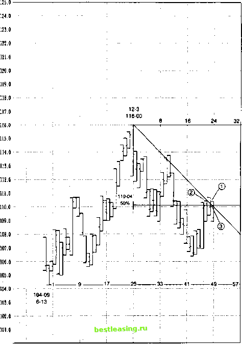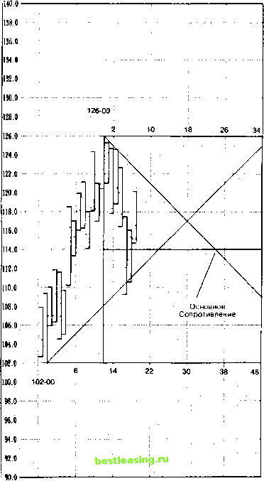 70.0- 63.6 69.2 68.8 68.4 68.0 67.6 67.2 66.8 66.4 66.0 65.6 65.3 64.8 64.4 64.0 6S.6 61.2 63.8 62.4 62.0 61.6 61.2 60.8- 60.4 60.0- Графи к ко л еб ан и й 5-12 6642 6625 ![]() 6437 6300 4-в +265 ![]() -205 4/7/97 4/17/97 4/29/97 54/97 5/21/97 6/3/97 6/1 3/97 6/25/97 Рис. 9.46 Используйте график колебания для прогнозирования поведения цены. ![]() 126-00 114-00(50%) 102-00 6/30/94 2/28/95 10/31/95 6/30/96 2/28/97 10/31/97 6/30798 Рис. 9.47 Возведение ценового диапазона в квадрат углом 1x1 и 50% уровнем. ![]() wo, о 6/21/96 8/16/96 10/11/96 12/6/96 1/31/97 3/28/97 5/23/97 7/18/97 Рис. 9.48 Объединение горизонтальных и диагональных индикаторов цены. Ключ: (Т) = угол Ганна 110-08; @ = 50% цены 110-40; () зона сопротивления от 110-04 до 110-08. 1 2 3 4 5 6 7 8 9 10 11 12 13 14 15 16 17 18 19 20 21 22 23 24 25 26 27 28 29 30 31 32 33 34 35 36 37 38 39 40 41 42 43 44 45 46 47 48 49 50 51 52 53 54 55 56 57 58 59 60 61 62 63 64 65 66 67 68 69 70 71 72 73 74 75 76 77 78 79 80 [ 81 ] 82 83 84 85 86 87 88 89 90 91 92 93 94 95 96 97 98 99 100 |