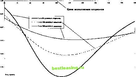 Поведение тэты во времени характеризуется ярко выраженной нелинейностью - чем ближе срок до истечения, тем выше значение тэты в абсолютном выражении. Но в ряде случаев, особенно при определении методов управления риском стратегий волатильности, которые мы будем обсуждать позже, имеет смысл уйти от математики и принять условно, что динамика временного распада линейна во времени. Назовем эту тэту линейной тэтой , поскольку такого понятия в теории опционов не существует, но позже оно нам понадобится. Вычислить линейную тэту не составляет никакого труда: достаточно поделить опцион- ную премию на число календарных или торговых дней, в зависимости от целей анализа - требуется нам оптимистичный взгляд или пессимистичный. Например, для 30-дневного опциона колл с ценой исполнения 100 при цене актива 100 можно дать оценку линейной тэте , как находящейся в границах от 0.04 до 0.058 (0.04= 1.216/30 и 0.058= 1.216/21). Сравнение с центральной строкой таблицы 2-1 показывает, что математическая модель указывает на текущее значение тэты в размере 0.022 при расчете на 365-дневной основе и 0.031 - на 253-дневной. 2.5. Ро Ро {Rho) - характеризует чувствительность цены опциона от изменения процентных ставок. Опционы пут и колл по-разному реагируют на колебания ставки. При их подъеме премия по опционам колл растет, а опционы пут дешевеют. При снижении ставок - наоборот. Для опционов колл ро - величина положительная, а для опционов пут - отрицательная. Опционы вне денег в меньшей степени испытывают на ![]() Рис. 2-8. Цена 100-дневного американского фондового опциона колл при 50-процентной волатильности при различных процентных ставках 1 2 3 4 5 6 7 8 9 10 11 12 13 14 15 16 [ 17 ] 18 19 20 21 22 23 24 25 26 27 28 29 30 31 32 33 34 35 36 37 38 39 40 41 42 43 44 45 46 47 48 49 50 51 52 53 54 55 56 57 58 59 60 61 62 63 64 65 66 67 68 69 70 71 72 73 74 75 76 77 78 79 80 81 82 83 84 85 86 87 88 89 90 91 92 93 94 95 96 97 98 99 100 101 102 103 104 105 106 107 108 109 110 111 112 113 |