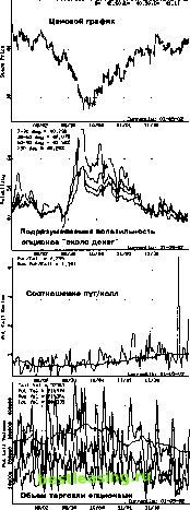 Следует отметить, что практикуется использование таких показателей, как соотношение открытых позиций по опционам пут и колл (Put/Call Ratio) и показатели объема торговли по опционам пут и колл (Put Call Volumes). Данные обычно предоставляются по отдельному активу, но могут охватывать и рынок в целом. Очень сложно пытаться утверждать о высокой полезности данных показателей для торговца волатильностью. В этом вы можете убедиться сами, рассмотрев рисунок 4 - 6. ![]() Рис. 4-6. Ценовой график, подразумеваемая волатильность, соотношение открытых позиций пут /кол и объемы торговли опционами в шестимесячном периоде Nasdaq 100 Trust (ООО, АМЕХ) Как показывает практика, наилучшим является подход к результатам анализа, когда используется простой здравый смысл. Поэтому всегда следует помнить: 1) Если кто-то покупает опционы, то кто-то их продает; 2) Если кто-то покупает, может быть, он видит или знает нечто такое, чего другие не видят или не знают. При отсутствии доступа к ресурсам, позволяющим осуществлять поиск по критериям волатильности, обычно являющихся платными, всегда остается возможность обнаружить интересные ситуации при отслеживании торговой активности и выяснении чрезмерно высоких показателей по числу открытых позиций на определенных опционных контрактах. Этот путь особенно продуктивен, когда эти опционы обладают большим сроком до истечения. Как правило, выявление такой аномалии не приводит к немедленному результату на рынке, поэтому в распоряжении остается достаточно времени для полноценного изучения перспектив создания той или иной стратегии. Этот срок может продлиться от нескольких дней до двух недель, прежде чем ситуация серьезно изменится. Более того, в течение этого времени можно получить даже лучшие условия для создания позиций, чем существовали в момент активизации действий крупных игроков, обеспечивших аномалию. Единственно неприятный факт заключается в том, что обычно лидерство остается за узким кругом инструментов, поэтому в соответствующих списках редко появляются новые имена. Но за длительный период времени можно ожидать появление достаточного числа активов (акций, товаров, процентных инструментов или валюты), с которыми можно эффективно работать по волатильности. А так как стратегии волатильности по большей части рассчитаны на длительные сроки работы с позициями, то указанный негативный фактор в сильной степени нивелируется. С другой стороны, если используются относительно краткосрочные позиции, то это требует большего понимания рынка, где планируется применение стратегий волатильности, поэтому обычно их отслеживают постоянно, а следовательно - потребность в автоматизации поиска отклонений отсутствует. Результаты изучения рынка должны дать ответы на следующие вопросы. Какая тенденция ожидается с наибольшей вероятностью? Какова может быть модель движения цен? На протяжении какого периода времени мы можем доверять результатам проведенного анализа, и когда следует пересмотреть взгляды на рынок? Теперь пора перейти к определению класса стратегии, которому следует отдать предпочтение на выбранном финансовом инструменте. 4.2. Определение класса стратегии Кажется логичным использовать покупку волатильности, если мы ожидаем ее рост, а также предполагаем расширение торгового диапазона. Аналогично, в случае возросшей вол