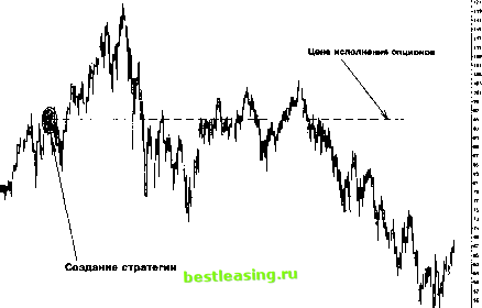 ки: на самом верхнем уровне и на самом нижнем, - и более ничего не делали. Например, оценивая результат от рехеджирования на каждом ценовом уровне при пробеге к от 93.87 к 158 и затем вниз к 57, с возвратом к 93.87, нам достаточно из 157.31 вычесть 57.24, получив 100.07. Умножив полученную величину на 10 (торгуемый лот), получим результат в $1001. Это позволяет при оценке ожидаемой отдачи не выяснять все ценовые уровни, где следует осуществлять ребалансировку, - достаточно найти экспозицию при уровнях цен, которые прогнозируются как вершины и основания. Скажем, при цене акции 158 экспозиция двух опционов рассматриваемой стратегии на кубе соответствует + 187.92 в случае их покупки и - 187.92 при продаже. Если мы намерены торговать только круглыми лотами, то придется выяснить ближайшие цены, где экспозиция соответствует выдвигаемым требованиям. Например, мы рассматриваем покупку или продажу исключительно по 10 акций, начиная с момента создания стратегии, поэтому нам потребуется найти ближайшие ценовые уровни, где экспозиция равна 185 или 195, которые можно использовать для обсчета ожидаемых результатов. Аналогичный подход можно применить и для всех остальных ценовых уровней, которые, как мы считаем, будут достигнуты рынком. Это существенно упрощает задачу, потому что позволяет выполнить расчеты с небольшими трудозатратами. В случае применения техники рехеджирование с положительным результатом мы имеем другую ситуацию: здесь придется выяснить среднюю цену, а так как закрывающая сделка осуществляется другим лотом, то выясненную разницу цен по закрывающим сделкам мы умножаем на размер лота, торгуемого при закрытии. Например, при движении наверх мы продавали на всем пути от 93.87 до 157.31, выполнив 6 сделок (введя 60 коротких акций), что дало нам среднюю цену продажи 123.52. Закрытие этих 60 коротких акций произошло при возврате к 93.87, имы получили результат $1779 ( = (123.52-93.87)Х60 = 29.65Х60). Третье существенное замечание касается учета изменения волатильности и ставок, неминуемо изменяющих экспозицию и сдвигающих ценовые уровни ребалансировки. Например, крайне важен вопрос: имеет ли смысл использовать новые значения волатильности, вводя их в модель и корректируя тактику менеджмента, а также уровни ребалансировки? С одной стороны, концепция управления риском стратегии волатильности требует пересматривать позиции при любых отклонениях, ведущих к изменению экспозиции. Но стоит ли это делать, если они могут носить краткосрочный характер и пересмотр способен привести к некоторым потерям? И снова: а не можем ли мы ошибаться, полагая это изменение кратковременным? Может быть, стоит придерживаться прежних уровней ребалансировки, особенно если они лучше подходят для управления риском стратегии с точки зрения получения прибыли? Однозначных ответов на поставленные вопросы не существует, так как очень многое зависит от местоположения базового актива в момент, когда возникла необходимость пересмотра ценовых уровней для ребалансировки. Четвертое замечание касается учета времени, действующего всегда, - оно регулярно двигает ценовые уровни для ребалансировки в сторону цены исполнения опционов. Это требует эпизодического пересмотра ордеров для рехеджирования: чем меньше срок до истечения, тем чаще. В связи с этим появляется мысль, а нельзя ли действовать с некоторым опережением или 