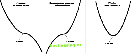 Исследовав повсеместно наблюдающиеся случаи, можно обнаружить существование трех вариантов поведения подразумеваемой волатильности в зависимости от цены исполнения опционов, относящихся к одной и той же серии. Каждая из ситуаций получила свое специфическое название, закрепившееся за ней. Ознакомиться с ними можно на рисунке 1 - 3 и обратившись к таблице 1 - 2, где использованы обозначения: IV- подразумеваемая волатильность, ITM- в деньгах , ATM - у денег , ОТМ - вне денег . Таблица 1-2. Варианты поведения подразумеваемой волатильности (rV) от цены исполнения опциона Модель Параметры модели
