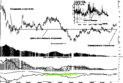 тильности. Бросая ретроспективный взгляд, легко понять: наилучшие возможности для этого существовали в апреле, когда акция поднималась выше $20, в июле - она почти целый месяц находилась около $20 и в сентябре - при снижении к $10.16, минимуму в исследуемом периоде. Цены, существовавшие в эти моменты, включая оценку дополнительной выгоды от продажи некоторых опционов, представлены в таблице 7-11, где в последних трех колонках скалькулированы величины премий в пунктах (в долларах), получаемых от продажи опционов в зависимости от числа выписанных контрактов. Итак, мы видим неплохой привесок , обеспечивающий чистую прибыль, так как все эти опционы, вне зависимости от срока, истекли вне денег . Остается вопрос, насколько трейдер сумел бы использовать эти возможности, и какую величину риска он был готов принять? Безусловно, ответ на него чрезвычайно индивидуален и никак не может являться предметом обсуждений. Тем не менее, одна из версий состоит в том, что в верхней части рынка имелась ситуация, когда продажа одного опциона колл у денег вообще не несла никакого риска с точки зрения возможности исполнения этого опциона контрагентом, так как экспозиция опционной компоненты стратегии в этой точке не превышала 550 - 600. Оборотная сторона медали - возникает риск недостаточного извлечения вы- 1 2 3 4 5 6 7 8 9 10 11 12 13 14 15 16 17 18 19 20 21 22 23 24 25 26 27 28 29 30 31 32 33 34 35 36 37 38 39 40 41 42 43 44 45 46 47 48 49 50 51 52 53 54 55 56 57 58 59 60 61 62 63 64 65 66 67 68 69 70 71 72 73 74 75 [ 76 ] 77 78 79 80 81 82 83 84 85 86 87 88 89 90 91 92 93 94 95 96 97 98 99 100 101 102 103 104 105 106 107 108 109 110 111 112 113 |