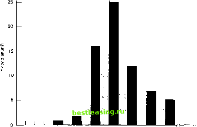 Рис. 3.4. Среднее значение дополнительной ставки дохода обыкновенных акций 112 эмитентов при первоначальном публичном размещении Источник: Roger G. Ibbotson, Рпсе Performance of Common Stock New Issues*, Journal of Financial Economics, 2, no. 3 (September 1975), p. 252. Проведенные исследования показали, что изначальное значение дополнительной ставки дохода в период с первоначального предложения до объявления первой цены закрытия составляла 14,1%21. Хотя есть и примеры того, что в течение двух последующих месяцев среднее значение дополнительной ставки дохода имело положительный знак, за три года после объявления первой цены закрытия эта величина составляла -37,4%. Следует отметить три сделанных в ходе исследования наблюдения. Первое - среднее значение дополнительной ставки дохода за трехлетний период для пред- ложений небольших компаний было меньше, чем для предложений крупных компаний. Второе - компании, акции которых имели самое большое первоначальное положительное значение дополнительной ставки доходности, в течение последующих трех лет имели самые худшие значения этого показателя. Третье - более молодые компании имели большее первоначальное значение дополнительной доходности и меньшее значение этого показателя за последующий трехлетний период. Очевиден вывод, что цены внесезонного предложения, как правило, сначала занижены, а потом завышены. Инвесторы могут купить набор бумаг различного вида по ценам их первоначального предложения и получить от этого большую выгоду за первые два месяца, чем те, кто предпочитает работать с другими бумагами (при эквивалентном риске). И неудивительно, что такие предложения члены группы по продаже часто распределяют между привилегированными клиентами. Бывает, что гаранты еще до начала продажи нового выпуска получают от инвесторов письма с выражением заинтересованности в покупке такого количества бумаг, которое раз в пять превышает объем выпуска 22. Непривилегированные клиенты могут купить только бумаги тех новых выпусков, цена на которые не слишком занижена. Однако совсем не обязательно привилегированный клиент обеспечит себе наибольшую ставку дополнительного дохода, так как требуются определенные затраты на то, чтобы попасть в эту категорию. Хотя в среднем первоначальный дополнительный доход от покупки бумаг нового выпуска может быть значительным, но в каждом конкретном случае, как можно видеть из рис. 3.5, его значение может быть как очень большим, так и весьма малым. Хотя в среднем разница цен бывает в пользу покупателя, но единичные инвестиции такого рода рискованны. ![]() -100 -80 -60 -40 -20 0 +20 +40 +60 >+70 Ставка дополнительного дохода (в %) Рис. 3.5. Среднее значение ставки дополнительного дохода в зависимости от числа приобретенных акций за период от даты предложения до конца первого месяца Источник: Myron S. Scholes, The Market for Securities: Substitution versus Price Pressure and the Effects of Information on the Share Prices , Journal of Business, 45, no. 2 (April 1972), p. 193. 3.10.4 Сезонные предложения Оказывается, что объявление о сезонном предложении приводит к падению цены на акции примерно на 2-4%. Причиной этому может являться существующая среди руководства фирмы-эмитента тенденция выпускать новые акции, когда им кажется, что их цена на рынке завышена. Таким образом, опубликование предложения служит для инвесторов поводом к пересмотру оценок стоимости акций, что и ведет к падению их рыночной цены23. Причем цены акци