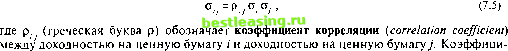 Рис. 7.6. Доходность двух ценных бумаг Двойное суммирование Рассматривая, что такое ковариация и корреляция, очень важно понимать, как производится двойное суммирование, используемое в уравнении (7.4). Хотя существует много способов двойного суммирования, приводящих к одному и тому же результату, один из способов, возможно, представляется более подходящим, чем другие. Он начинается с первого суммирования и присвоения / значения 1. Затем выполняется второе суммирование с последовательным присвоением j значений от 1 до 3. В этот момент / в первом суммировании увеличивается на 1, следовательно, теперь / = 2. Опять производится второе суммирование для всех j от I до 3, но только теперь / = 2. Далее / в первом суммировании увеличивается на 1, т.е. / = 3. Затем еще раз выполняется второе суммирование для всех j от 1 до 3. В данный момент нужно заметить, что / и j достигли своего верхнего предела, равного 3. Это означает, что настало время остановиться, так как двойное суммирование уже закончено. Этот процесс может быть представлен алгебраически следующим образом: 5л vly+E*. 2XjC2j + 5>з*у< (7.6а) = \.Х\ Х\ °11 + Х\ Х1 °12 + Х\ Х1 °13 + + Х2 Хх а, + Х2 Х2 о22 + Х2 Х3 а23 + + X3Xla3l +XlX1on+X,XloJn. (7.66) 1 2 3 4 5 6 7 8 9 10 11 12 13 14 15 16 17 18 19 20 21 22 23 24 25 26 27 28 29 30 31 32 33 34 35 36 37 38 39 40 41 42 43 44 45 46 47 48 49 50 51 52 53 54 55 56 57 58 59 60 [ 61 ] 62 63 64 65 66 67 68 69 70 71 72 73 74 75 76 77 78 79 80 81 82 83 84 85 86 87 88 89 90 91 92 93 94 95 96 97 98 99 100 101 102 103 104 105 106 107 108 109 110 111 112 113 114 115 116 117 118 119 120 121 122 123 124 125 126 127 128 129 130 131 132 133 134 135 136 137 138 139 140 141 142 143 144 145 146 147 148 149 150 151 152 153 154 155 156 157 158 159 160 161 162 163 164 165 166 167 168 169 170 171 172 173 174 175 176 177 178 179 180 181 182 183 184 185 186 187 188 189 190 191 192 193 194 195 196 197 198 199 200 201 202 203 204 205 206 207 208 209 210 211 212 213 214 215 216 217 218 219 220 221 222 223 224 225 226 227 228 229 230 231 232 233 234 235 236 237 238 239 240 241 242 243 244 245 246 247 248 249 250 251 252 253 254 255 256 257 258 259 260 261 262 263 264 265 266 267 268 269 270 271 272 273 274 275 276 277 278 279 280 281 282 283 284 285 286 287 288 289 290 291 292 293 294 295 296 297 298 299 300 301 302 303 304 305 306 307 308 309 310 311 312 313 314 315 316 317 318 319 320 321 322 323 324 325 326 327 328 329 330 331 332 333 334 335 336 337 338 339 340 341 342 343 |