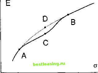 выполняется условие f(ax + (1 - а)у) > af(x) + (1 - a)f(y). Функция называется выпуклой, если для любых ж и у и для любого а, 0 < а < 1, выполняется условие f{ax + (1 - а)у) < af{x) + (1 - a)f(y). Если рассматриваемая функция является дважды непрерывно дифференцируемой, то условие вогнутости равносильно тому, что при всех х выполняется условие / (ж) < 0. Условие выпуклости в этом случае равносильно тому, что при всех ж выполняется условие / (ж) > 0. Говоря, что эффективный фронт является вогнутой кривой, мы имеем в виду, что он является графиком вогнутой функции аргумента а. ![]() Рис. 3.4. Недопустимая форма эффективного фронта (сплошная линия) Теория эффективных портфелей ценных бумаг Действительно, допустим, что эффективный фронт имеет форму, показанную на рис.3.4, т. е. не является вогнутым. Точками А, В л С показаны три эффективных портфеля. Из портфелей А и В можно составить портфель D, который имеет то же стандартное отклонение сг, что и портфель С, но большую ожидаемую доходность Е, т. е. портфель С не является эффективным. Мы дали формальное определение эффективного фронта. Но почему именно эффективные портфели должны быть привлекательны для вкладчиков? То, что портфели с большей ожидаемой доходностью привлекательнее, чем портфели с меньшей ожидаемой доходностью, не вызывает сомнений. Но почему при одной и той же ожидаемой доходности портфели с меньшим стандартным отклонением доходности привлекательнее, чем портфели с большим стандартным отклонением? Здесь мы скажем только, что большинство вкладчиков не любит неопределенность. Подробно данный вопрос будет обсуждаться в §6 и 7. Теперь вместо портфеля из трех видов ценных бумаг рассмотрим портфель из те видов ценных бумаг. Через Q обозначим множество тех точек J5, координаты которых (сг, Е) являются стандартным отклонением и математическим ожиданием доходности портфеля, определяемого каким-нибудь набором чисел si, ж2,..., жп, таким,что Ж1 + ж2 + + Жп = 1, 1 > h, х2 > h,- , хп > 1п. (3.1) Здесь li, /2,..., 1п - некоторые действительные числа. Если /, < 0, то по г-й ценной бумаге вкладчиком может быть занята как длинная, так и короткая позиция, а {-li) - это отношение суммы, которую вкладчику допускается получить от выпуска г-й ценной бумаги, к его собствен- ному капиталу. Если li - большое по абсолютной величине отрицательное число, то фактически это означает, что отсутствуют ограничения на выпуск г-й ценной бумаги. Если li = 0, то по г-й ценной бумаге вкладчиком может быть занята только длинная позиция. Если > 0, то вкладчик должен направить соответствующую часть капитала на покупку г-й ценной бумаги. Эффективный фронт QQ для п видов ценных бумаг определяется точно так же, как и для трех видов ценных бумаг. Пример. Рассмотрим набор из б ценных бумаг. Пусть ожидаемые доходности Ej этих ценных бумаг равны ( 0.040700 0.046400 0.070500 0.099400 0.085700 0.125000 ). Пусть ковариаций доходностей Сц равны / 0.000189 0.000103 0.000102 0.000370 0.000081 \ 0.000037 0.000103 0.000377 0.000460 0.000146 0.000342 0.000225 0.000102 0.000460 0.000612 0.G00131 0.000409 0.000358 0.000370 0.000146 0.000131 0.000808 0.000160 0.000087 0.000081 0.000342 0.000409 0.000160 0.000425 0.000194 0.000037 \ 0.000225 0.000358 0.000087 0.000194 0.000407 ) На рис. 3.5 приведены три рассчитанных эффективных фронта. Эффективный фронт а рассчитан при условии, что выпуск каждой из б рассматриваемых ценных бумаг разрешен, но ограничен. Средства, полученные от выпуска каждой ценной бумаги, не должны превышать 30% собственного капитала вкладчика: 1Х - 12 = 13 - 14 - /5 = /6 = -0.3. То, что ограни