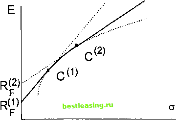 Рассмотрим также вопрос о том, как будет выглядеть эффективный фронт, если процентная ставка Rp\ по которой вкладчик может дать безрисковый заем (например, купив государственные ценные бумаги) ниже процентной ставки Rp, по которой вкладчик может взять заем. Эффективный фронт для этого случая изображен сплошной линией на рис. 4.5. Он состоит из отрезка прямой линии, соединяющего точку с вертикальной осью, из части криволинейного эффективного фронта между точками и (эффективного фронта, соответствующего портфелям, составленным только из рисковых ценных бумаг), и из полупрямой (или отрезка), расположенной правее точки С2\ ![]() Рис. 4.5. Эффективный фронт для случая, когда безрисковое заимствование производится по более высокой процентной ставке, чем безрисковое одалживание § 5. Упрощенные методы нахождения эффективных портфелей. Использование индексов Одним из наших основных предположений является рассмотрение доходностей ценных бумаг как случайных величин Ri, R2, .., Rn. Но при построении эффективных фронтов используется не вся информация об этих случайных величинах, а только следующие числовые характеристики случайных величин: математические ожидания E(R{), дисперсии D(Ri), ковариации Cov(R{, Rj). В §1 был описан только простейший способ определения этих числовых характеристик по известным в предыдущие периоды значениям доходностей рассматриваемых ценных бумаг. Вопросу о том, как находить числовые характеристики случайных величин, нужные для построения эффективных фронтов, посвящено большое количество работ. Обзор некоторых из этих работ и сравнительный анализ существующих методов можно найти, например, в [2]. Опишем один из распространенных практических подходов к построению случайных величин Ri,R2, ., Rn- Этот подход имеет название модель с одним индексом. Пусть случайная величина Rm обозначает доходность индекса рынка. (Обозначение М происходит от английского слова market - рынок.) Индекс рынка - это набор ценных бумаг, используемый для определения ситуации на данном рынке фондовых активов путем расчета усредненной стоимости этих ценных бумаг21. Можно даже сказать, что индекс рынка - это набор ценных бумаг в совокупности со способом расчета их усредненной стоимости. Иногда сокращенно индексом называют саму усредненную стоимость. Доходность индекса рынка может рассматриваться как усредненная доходность входящих в данный индекс ценных бумаг. При том, что мы рассматриваем рынок, состоящий из п видов ценных бумаг, возможно, например, следующее определение этой случайной величины: Rm = - У] Д;. Мы привели последнюю формулу только для иллюстрации. Использоваться в дальнейшем она не будет22. Если речь идет о рынке акций в США, то в качестве индекса рынка может быть использован, например, индекс Доу - Джонса или индекс агентства Стандард энд Пур . В модели с одним индексом предполагается, что Rm -это общий фактор, и зависимость линейна, т. е. случайные Определение индекса см. [37], с. 982. Распространено также другое определение, когда под индексом понимается не сам набор ценных бумаг, а некоторая характеристика этого набора. 22В §8 мы будем обозначать через Rm доходность рыночного портфеля, т. е. портфеля, состоящего из всех акций, имеющихся на рынке, и тогда последняя формула оказывается вообще неправильной. Но в этом параграфе возможна большая свобода в выборе 