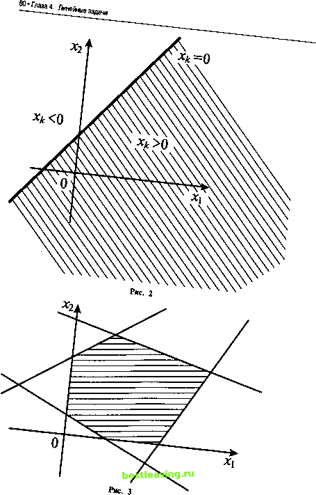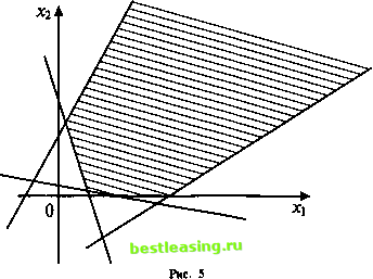 на главные (базисные) и свободные, число которых равно л - т и через которые можно выразить все главные неизвестные. До сих пор (при рассмотрении задач в предыдущей главе) мы были озабочены только вопросом поиска решения задачи, будучи уверены (и не без оснований), что искомое решение всегда существует. В данном случае дело обстоит немного иначе. Для того чтобы разобраться в его сути, прибегнем к наглядной геометрической интерпретации. Рассмотрим частный случай, когда л - т =2. Предположим для определенности, что свободные неизвестные - это х\ и х2 (этого всегда можно добиться перенумерацией неизвестных). Тогда система линейных уравнений (-А-А-) сводится к равносильной ей системе х, = апхх +а/2*2 +£ /=3, л. (*) Введем на плоскости координат-ную систему Ох\х2 и ограничим наши рассмотрения только первой четвертью вследствие того, что свободные неизвестные хх и х2 должны принимать только неотрицательные значения (рис. 1). Базисные неизвестные х3, х также должны быть неотрицательны- ми, О х3 > 0, хп > 0. Рис. 1 Это обстоятельство накладывает на выбор значений свободных неизвестных хх и х2 определенные ограничения: апхх +а/2х2 + >0, /=3, л. (*#) Каждое из этих неравенств задает полуплоскость (рис. 2). Часть первой четверти, состоящая из точек (хь х2), принадлежащих одновременно всем л - 2 полуплоскостям, и есть та область, из которой допустимо черпать пары (хь х2) (рис. 3). Опишем все случаи, когда в первой четверти нет ни одной точки (*ь х2), обеспечивающей неотрицательность главных неизвестных: 1) условия (**) противоречивы, 2) общая часть всех полуплоскостей, описываемых неравенствами (*#), целиком лежит вне первой четверти (рис. 4). ![]() ![]() Рис. 4 Еще один неинтересный случай, когда общая часть всех полуплоскостей (##) неограниченна (рис. 5). ![]() В реальных задачах описанных случаев, как правило, не бывает. Все эти опасности подстерегают нас, главным образом, в придуман-ных , искусственно поставленных задачах, хотя иногда легкомысленное планирование (неполный учет имеющихся ресурсов) приводит к неразрешимым задачам линейного программирования ([2], с. 64). 1 2 3 4 5 6 7 8 9 10 11 12 13 14 15 16 17 18 19 20 21 22 23 24 25 [ 26 ] 27 28 29 30 31 32 33 34 35 36 37 38 39 40 41 42 43 44 45 46 47 48 49 50 51 52 53 54 55 56 57 58 59 60 61 62 63 64 65 66 67 68 69 70 71 72 73 74 75 76 77 78 79 80 81 82 83 84 85 86 87 88 89 90 91 92 |
