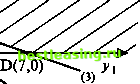Ъух + 2у2 > Ю. Путем подобных рассуждений получаем еще два неравенства Аух +6у2 >20, Ух + 3у2>7. Доход z от продажи сырья по ценам у{ и у2 равен 1 = Шух + 400у2. Ясно, что владельцу необходимо знать, каким будет гарантированный доход при этих ценах, что соответствует минимуму целевой функции z. Итак, мы получили задачу Зу t +2у2 >10, 4у1+6у2>20, yt+3y2>7, (V) ух >0,у2>0, г = 300у, + 400у2 - min. Заменив в задачах (4ь) и (V) условия-неравенства на условия-равенства описанным выше способом, получим Ъхх + 4х2 +х3 + х4 =300, 2Xj + 6х2 +3х3 + х5 = 400, х, > 0, х2 > 0, х3 > 0, х4 >0, х5 >0, w = 10х1 + 20х2 + 7х3 - max 3+2-Уз =10, 4у1+6у2-у4=20, Ух +3у2-у5 =7, уО, у2>0,у3>0, у4 >0, у5 >0, Z = 300y1 +400у2 ->min. Решим вторую из этих задач графическим методом. Из условий ух > 0, у2 > 0, Уз > 0, у4 > 0, у5 > 0, получаем, в частности, что (1) ЗугуЮ, (2) 4у1+6у2>20, (3) у,+3у2>7. ![]() А(0,5)л =0 У5 =0 (0,) ![]() Рис. 8 Каждое из трех этих неравенств описывает полуплоскость, пересечением которых является многоугольная область с четырьмя угловыми точками (рис. 8). Найдем их координаты. Имеем А(0,5), 5(2,2), фу), Д(7,0). Координаты точек В и С находим, решая линейные системы (1) 3Л + 2у2 = 10, (2) 4у, + 6у2 = 20 (2) 4Л + 6у2 = 20, (3) У\ + Ъу2 = 7 соответственно. Вычисляя в них значения целевой функции z, получим Отсюда *min=1400, у[ = 2, у\ =2. Подставляя найденные значения у[ пу*2в условия-равенства задачи <*)> 6 + 4-уз =10, 8+12-j>4 =20, 2+6-j>5=7, находим значения остальных 3>з = 0 У4* = 0, у5 = 1. Пользуясь таблицей соответствия