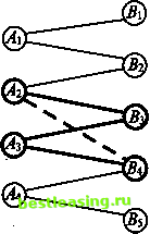 Таблица 3 ![]() Рис. 10 В таблице 4 методом северо-западного угла выделен опорный набор (см. также рис. 10). Таблица 4 ![]() Рис. 11 Вычислим соответствующее значение линейной функции затрат: 12 17 + 6 15 + 7 16+11 34 + 9 - 4 + 7 18 + 9 7+ 14 23 = 1327. Немного поизучав таблицу 4, заметим, что полученный опорный набор не является оптимальным. В самом деле, дешевый путь А2В4 не задействован, зато используются более дорогие А3Ва, А3В3 и А2В3 (рис. 11). © © © © ![]() ® ® © © © © Рис. 12 Рис. 13 Попробуем изменить ситуацию, а именно, заменим один из дорогих маршрутов, A3B4i на дешевый А2ВА, но сделаем это аккуратно и очень осторожно (рис. 12): закрывая маршрут А3ВА, мы переносим 18 единиц его груза на маршрут А2В4, а для того, чтобы весь набор оставался опорным, снимем 18 единиц груза с маршрута А2В3, перенесем их на более дешевый А3В3 (рис. 13) и окончательно получим взамен старого новый набор маршрутов - А2В4, А2В3 и А3В3 (в таблице 4 стоимости соответствующих перевозок подчеркнуты). Подведем итоги изменения маршрутов и перевезенных по ним грузов и вычислим стоимости старой и новой перевозок. Имеем соответственно 5 18 + 7 -0 + 9 -22 + 11 16 5 -0 + 7 18 + 9 -4+11 -34. Разность 5 (18 - 0) + 7 (0-18) + 9 (22-4) +11 (16-34) = = 5 18-7 18 + 9 18-11 18 = (5-7 + 9-11) 18 = = (-4) 18 = -72 отрицательна. Тем самым, на новом опорном наборе (таблица 5) Таблица 5 стоимость перевозки стала меньше на 72 единицы: 1327 - 72 = 1255. Заметим, что альтернированную сумму 5-7 + 9-11 легко получить путем перемещения по клеткам (2,4), (3,4), (3, 3) и (2, 3) по часовой стрелке, (2, 4) -> (3, 4) -> (3, 3) -> (2, 3), выбирая стоимость перевозки единицы груза в клетках с нечетными номерами со знаком +, а в клетках с четными номерам со знаком - (в таблице 4 стоимости соответствующих перевозок подчеркнуты). Рассматривая рисунки 11,12 и 13, мы можем заметить, что, добавляя к ломаной А2Вз, А3В3, А3ВА звено А2ВА мы сначала получаем цикл, а затем, отбрасывая из него звено А3В4, - новую схему перевозок. Замечание. В результате проведенного преобразования мы изменили часть величин, подлежащих определению (это х23, х2а, х33 и х34), никак не затронув остальные 16 = 20 - 4. При этом общий вклад измененных величин в систему траспортных равенств остался тем же самым: от связей *23 Х24 *33 *34 = 22, х2з + *зз ~~ 38, х24 + = 18 мы перешли к связям х23 + х24 = 34, хз + Ху = 22, +Х34 = 18, *23 +хзз ~~ 38, 1 2 3 4 5 6 7 8 9 10 11 12 13 14 15 16 17 18 19 20 21 22 23 24 25 26 27 28 29 30 31 32 [ 33 ] 34 35 36 37 38 39 40 41 42 43 44 45 46 47 48 49 50 51 52 53 54 55 56 57 58 59 60 61 62 63 64 65 66 67 68 69 70 71 72 73 74 75 76 77 78 79 80 81 82 83 84 85 86 87 88 89 90 91 92 |