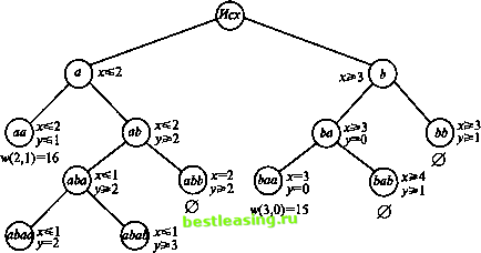 На отрезке JL целевая функция достигает максимума в целой точке L, wL=17 (wy=12). Условия на х и у в подзадаче аЪаЪ противоречивы. Значение 17 целевой функции w = 5х + 6у в точке Ц1, 2) является наибольшим среди всех целых точек, подчиняющихся исходным условиям. Задача решена. Действия, проведенные при поиске решения исходной задачи, удобно представить в виде дерева (дерева решения), на котором отражены основные этапы и последовательно получаемые результаты (рис. 45). ![]() н<1,2)=17 0 Рис. 45 Замечание. Проходя еще раз по построенному дереву решения задачи целочисленного программирования, можно заметить, что в конечных вершинах (любого уровня) предъявляются либо целая точка, либо пустое множество. 4.4. литература 1. Фрейденталь Г. Математика как педагогическая задача: Книга для учителя. Ч. И. - М.: Просвещение, 1983. 2. Вентцель Е.С. Исследование операций. Задачи, принципы, методология. - М.: Дрофа, 2004. 4.4. Литература 125 3. Леонид Витальевич Канторович: человек и ученый: в 2 т. Т. 2. - Новосибирск: Изд-во СО РАН, филиал Гео , 2004. 4. Васильев Ф.П., Иваницкий А.Ю. Линейное программирование. - М.: Факториал Пресс, 2003. 5. Ашманов С А. Линейное программирование. - М.: Наука, 1981. 6. Стренг Г. Линейная алгебра и ее применения. - М.: Мир, 1980. 7. Вагнер Г. Основы исследования операций: в 3 т. - М.: Мир, 1972. 8. Зуховицкий СИ., Авдеева Л.Н Линейное и выпуклое программирование. - М.: Наука, 1964. 9. Rivett P. The craft of decision modeling. - John Wiley & Sons, 1994. 10. Моисеев КН. Математик задает вопросы... (Приглашение к диалогу). - М.: Знание, 1975. 11. Канторович Л.В., Горстко А.Б. Оптимальные решения в экономике. - М.: Наука, 1972. Глава 5 ИГРЫ ... всякий открытый бой требует тайной подготовки, пусть малой и короткой по времени ([1], с. 364) В практической деятельности нередко приходится рассматривать явления и ситуации, в которых участвуют две или более стороны, имеющие несовпадающие интересы и обладающие возможностями применять для достижения своих целей разнообразные действия. Подобные явления и ситуации принято называть конфликтными, или просто конфликтами. Типичный конфликт характеризуется тремя основными составляющими: заинтересованными сторонами, возможными действиями этих сторон и их интересами. Конфликтная ситуация, взятая из реальной жизни, как правило, довольно сложна. К тому же ее изучение затруднено наличием разных факторов, часть из которых не оказывает сколь-либо заметного влияния ни на развитие конфликта, ни на его исход. Поэтому, для того чтобы анализ конфликтной ситуации оказался возможным, необходимо отвлечение от этих второстепенных обстоятельств. При благоприятном развитии событий удается построить упрощенную, формализованную модель конфликта, которую принято называть игрой. От реальной конфликтной ситуации игра отличается еще и тем, что ведется по вполне определенным правилам. Необходимость изучения и анализа конфликтов, представляемых в виде упрощенных математических моделей (игр), вызвала к жизни специальный математический аппарат - теорию игр. Опишем основные понятия, используемые в этой теории. Заинтересованные стороны называют игроками. Любое возможное для игрока действие (в рамках заданных правил игры)называется его стратегией. В условиях конфликта каждый игрок выбирает свою стратегию, в результате чего складывается набор стратегий, называемый ситуацией. Заинтересованность игроков в ситуации проявляется в том, что 