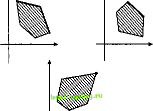 в третий класс попадут граничные точки, у перемещение которых по множеству дЯ уменьшает одну из координат при одновременном увеличении другой (дуга BD границы ая . Множество точек третьего класса принято называть границей (множеством) Парето дан- ного множества Я (выделено на рис. 4). На рис. 5 указаны границы Парето неко- Рис. 4 торых простейших множеств. ![]() Рис. 5 Однако вернемся к даме, выбирающей шляпку, и попробуем придать ее размышлениям геометрическую наглядность. По степени элегантности шляпки можно разделить, например, так - элегантные (Э), очень элегантные (ОЭ), не очень элегантные (НОЭ), сверхэлегантные (СЭ) и совсем не элегантные (СНЭ) (см. вертикальную ось на рис. 6а). По горизонтальной оси будем откладывать величину суммы, которая останется в кошельке у дамы после возможной покупки той или иной шляпки, - чем дешевле шляпка, тем большей будет оставшаяся сумма. Тогда с каждой шляпкой, на которую обратила свое внимание дама, можно сопоставить точку на координатной плоскости. Выделение границы Парето отбросит неинтересные варианты и, конечно, облегчит окончательный выбор (см. рис. 66). Но каким он будет? ![]() оэ э ноэ снэ оэ э ноэ снэ Рис. 6а Рис. бб Рис. 7а Мой кошелек. Мои глаза. Их вечный грустный поединок. Укажем простое геометрическое правило, посредством которого можно выделять из заданного плоского множества его границу Парето. Рассмотрим пробный прямой угол, стороны которого сонаправлены координатным осям U и V (рис. 7а). Положение этого пробного угла на плоскости однозначно определяется его вершиной Q. Перемещая пробный угол (параллельно самому себе), мы будем собирать только те точки заданного множества Я, которые можно совместить с точкой Q так, чтобы ни одна другая точка множества Я не попадала ни внутрь этого угла, ни на одну из его сторон (рис. 76). Совокупность всех таких точек и будет искомой границей Парето для множества Я. Замечание. Границу Парето множества Я в пространстве R можно определить как совокупность точек Щ, ..,)GR , обладающих следующим свойством: из серии неравенств и условия (К K )GR неизбежно вытекает, что U, = Vu ![]() Рис. 76 6.2. Метод уступок Пусть на плоскости (х, у) задано множество w (рис. 8а) и в каждой точке этого множества определены две непрерывные функции U = Ф(х, у) и V = Щх, у). Рассмотрим следующую задачу. Во множестве со найти точку (х*, у*), в кото- Ф(х\у) = max и 4f(x\у) = max. Обычно это записывается так Рис. 8а Ф(х,}>) -> max и ЧЧх,}>)-> max, (х,>>) Е со. Сразу же отметим, что поставленная задача в общем случае решения не имеет. В самом деле, нарисуем на плоскости (U, V) множество всех точек, координаты которых вычисляются по формулам х) (точка уто- и = Ф(х,у), V = 4>(x,y), (х,у)Е(о. Из рис. 86 видно, что точка с координатами (Фтах, Чтах/ пии) лежит вне множества Q. Это означает, что наибольшее значение функции U и наибольшее значение функции К достигаются в разных точках. Тем самым, удовлетворить обоим требованиями одновременно невозможно. Метод (последовательных) уступок является одним из наиболее простых методов решения задачи с двумя критериями. Этот метод состоит в том, что лицо, принимающее решения (ЛПР), работая в режиме диалога с аналитиком-специалистом, последовательно сужает множество точек на границе Парето и в конце концов соглашается остановиться на некоторой компромиссной паре значений критериев. На рисунке 9 показано, как последовательно, шаг за шагом, вс