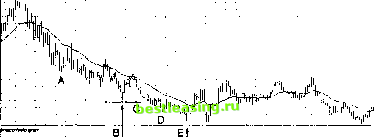 Открывайте короткие позиции, если гистограмма MACD показывает медвежье расхождение, то есть если цены поднимаются до нового максимума, а гистограмма идет вниз от более низкого максимума. Когда рыночная толпа встает на дыбы и ревет, хочется забыть об осторожности и броситься покупать. Трудно сохранять хладнокровие, когда толпу начинает лихорадить. Но серьезный трейдер всегда следит за расхождениями гистограммы MACD. Если цены растут, падают, а затем вновь поднимаются до еще более высокого уровня, а гистограмма при этом повышается, спадает ниже нулевой линии (ломая бычий хребет) и снова повышается, но уже до более низкого уровня, то такая ситуация создает медвежье расхождение. Это значит, что быки стали слабее, цены растут по инерции и должны будут обрушиться, как только инерция иссякнет. Гистограмма MACD подает сигнал к занятию коротких позиций, когда начинает снижаться после второго пика. Открыв короткую позицию, разместите стоп-приказ несколько выше последнего пика. Поставить стоп-приказ при открытии короткой позиции в районе ценовых максимумов очень трудно из-за высокой Волатильности. Относительно небольшие позиции позволяют устанавливать стоп-приказы на большем расстоянии. Расхождение между гистограммой MACD и ценами на дневных графиках почти всегда говорит о том, что имеет смысл заключать сделку. Расхождения на недельных графиках обычно отмечают развороты крупных бычьих и медвежьих трендов. Если гистограмма MACD достигает нового максимума за последние несколько месяцев, это указывает на исключительную силу быков и означает, что цены, скорее всего, вернутся к соответствующему пику и могут его превзойти. Если гистограмма MACD опускается до нового минимума за последние несколько месяцев, это указывает на исключительную силу медведей и означает, что цены, скорее всего, вернутся к этому уровню или упадут еще ниже. Подъем гистограммы MACD до нового рекордного пика указывает на исключительный всплеск бычьего энтузиазма. Даже если быки возьмут передышку, инерция роста настолько сильна, что после перерыва подъем, скорее всего, возобновится. Спад гистограммы MACD до нового, более глубокого минимума указывает на исключительную силу медведей. В этом случае, даже если быки и смогут вызвать подъем, инерция падения вернет цены к этому минимуму или опустит еще ниже. Гистограмма MACD - как фары автомобиля, освещающие отрезок дороги перед машиной. Вы не видите всю дорогу, но освещенного отрезка достаточно, чтобы при езде на нормальной скорости быть готовым к повороту. ![]() -11000 -107 SO 105 00 102 SO -1O0O0 -9750 -9SO0 92 50 -ЭДО0 87 SO -04 00 -87 55 80 00 -77 50 75 00 7250 -70.00 -67 SO 13 Й) S7 4 11 10 ?6 1 * 15 32 29 5 12 19 36 3 12 19 ?6 *2 4 16 *2) 7 H ? 28 4 int И ? 3 16 3 4i Рис. 5.10. Сигнал собаки Баскервилей В ноябре 2000 года иены фьючерсов на мазут поднялись до исторических высот. Затем спрос начал снижаться, на рынок были выброшены новые запасы, бычья лихорадка закончилась и иены на мазут стали падать. В декабре они упали до 85 иентов (точка А). При этом гистограмма MACD опустилась до нового глубокого минимума, указывающего на чрезвычайную силу медведей. Потом был короткий подъем иен к уровню ЕМА, индикатор достиг положительного значения (перелом медвежьего хребта), а затем снова упал до нового, но уже менее глубокого минимума (точка В). Одновременно на иеновом графике образовался хвост кенгуру, протянувшийся вниз до уровня 75 иентов, 