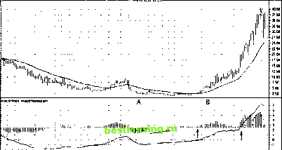 который вам больше нравится. Необходимо создать систему, которая учитывала бы показания всех индикаторов и разрешала их конфликты. Конфликты масштабов времени Бывает, что один и тот же индикатор указывает, что на данном рынке в один и тот же день действует и восходящий, и нисходящий тренд. Как это может быть? Скользящее среднее может расти на недельном графике, подавая сигнал к покупке, и падать на дневном графике, подавая сигнал к продаже. Оно может расти на часовом графике, подавая сигнал к открытию длинных позиций, и понижаться на десятиминутном, подавая сигнал к игре на понижение. Какому из этих сигналов лучше следовать? Любители ищут легких решений. Они выбирают один график, чаще всего дневной, и смотрят на показания его индикаторов, игнорируя все остальные масштабы. Такой подход работает до тех пор, пока мощное движение на недельных графиках или вспышка на часовых не ворвется в их масштаб и не развернет тренд. Человек, который сказал: Меньше знаешь, лучше спишь , точно не был трейдером. Люди, потерявшие деньги на дневных графиках, иногда думают, что смогут поправить дела, переключившись на данные в режиме реального времени. Но если вы не можете выиграть на дневных графиках, то переход на живые данные лишь ускорит темп потерь. Живые экраны гипнотизируют неопытных трейдеров. А самые отчаянные из них могут подойти еще ближе к рынку, арендовав место в торговом зале биржи. Только вскоре сотрудник расчетной палаты заметит, что маржа новичка упала ниже лимита, и выведет его из зала. Неудачник уйдет, и больше его там никто не увидит. Проблема неудачников не в скорости информации, а в бессистемности решений. Чтобы разрешить конфликт между разными временными масштабами, нужно не приближаться к рынку, а сделать шаг назад и принять долгосрочное, стратегическое решение: играть на повышение или понижение. Только потом можно шагнуть ближе к рынку и определить подходящие моменты для открытия и закрытия позиций. Это и есть цель системы тройного экрана. Какая перспектива долгосрочная, а какая краткосрочная? Система тройного экрана ориентируется на соотношения между различными масштабами времени. Для начала она предлагает вам выбрать свой излюбленный масштаб времени и назвать его среднесрочным. Если вы любите работать с дневными графиками, то среднесрочным масштабом для вас будет дневной. Если вы играете на внутридневных колебаниях цен и используете 5-минутные графики, среднесрочным масштабом для вас станет 5-минутный и т.д. Система тройного экрана определяет долгосрочную перспективу как среднесрочный масштаб, умноженный на 5 (см. раздел Время - коэффициент пятерки , стр. 101). Если ваш среднесрочный масштаб - дневной, то долгосрочным для вас будет недельный график. Если же среднесрочный масштаб - пятиминутный, то долгосрочным будет получасовой график. Выберите любимый масштаб времени, назовите его среднесрочным и сразу же перейдите к графику на порядок выше - к долгосрочному. Приняв на нем стратегическое решение, вернитесь к среднесрочному и ищите точки входа или выхода из сделок. Ключевой принцип системы тройного экрана - сначала отдалиться от рынка, взглянуть на него в более широкой перспективе и принять стратегическое решение. Используйте долгосрочный график, чтобы решить, играть на повышение или понижение, а затем возвращайтесь к сре