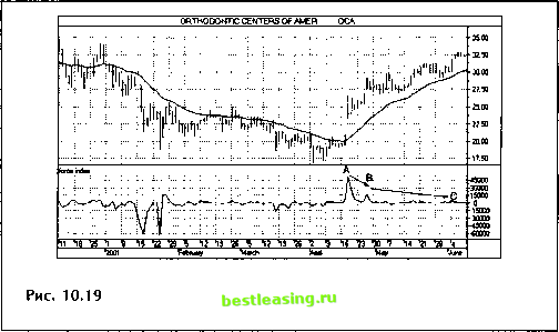 Рис. 10.18 ![]() Вход Недельный: Подъем достиг уровня серьезного сопротивления, при этом у правого края графика гистограмма MACD перестала расти, указывая, что подъем приблизился к концу. Дневной: Мощные медвежьи расхождения между ценами и гистограммой MACD, MACD-линиями (А-В-С), а также индексом силы (А-В-С). Узкие дневные диапазоны на прошлой неделе показывают, что быки ушли с рынка, подъем окончился. План - короткая продажа с размещением стоп-приказа по методу зоны безопасности. Действия: Открыл короткую позицию 11 июня 2001 г. по 32,21, стоп-приказ на 33,49. ![]() Выход Дневной: Сильная поддержка вблизи ЕМА остановила падение цен; в последний день (у правого края) подъем достиг уровня стоп-приказа по методу зоны безопасности. Действия: Закрыл короткую позицию 28 июня 2001 г. по 31,46. Оценка - 11 % (0,75 пункта из канала шириной 7 пунктов). 1 2 3 4 5 6 7 8 9 10 11 12 13 14 15 16 17 18 19 20 21 22 23 24 25 26 27 28 29 30 31 32 33 34 35 36 37 38 39 40 41 42 43 44 45 46 47 48 49 50 51 52 53 54 55 56 57 58 59 60 61 62 63 64 65 66 67 68 69 70 71 72 73 74 75 76 77 78 79 80 81 82 83 84 85 86 87 88 89 90 91 92 93 94 95 96 97 [ 98 ] 99 100 101 102 103 104 |