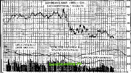 PLAT.O-Oaily 10/12/95 C = 413.50 O = .00 H = 416.50 L=411.50 V = 68 Volume 68.00 M AM J J Рис. 3.19. Графическое изображение объема торговли График предоставлен агентством Dow Jones Telerate ![]() DEC.I JAN. I FEB. MAR. APR. MAY JUNEj JULY AUG. SEPT. OCT. NOV. DEC. Рис. 3.20. Графическое изображение открытого интереса. Текущий открытый интерес показан сплошной линией; средний текущий интерес за 1978-83 г.г. - пунктирной линией. Из кн.: D. Murphy Technical Analysis of the Futures Markets Поскольку нас особенно интересует изменение величины объема, его график можно изучать и предсказывать с помощью классических фигур и линий трендов. Очень интересны осцилляторы, специфически построенные на изменении объема, с помощью которых можно получить вполне достоверные сигналы к покупке или продаже. Открытый интерес С помощью этого инструмента можно проверить правдивость предсказаний объема. Открытый интерес показывает, насколько интересен тот или иной контракт с долгосрочной точки зрения. Другими словами, насколько серьезно участники рынка воспринимают текущий тренд. Увеличение открытого интереса говорит о том, что сделки, заключенные в данный торговый день, были не только спекулятивными, но и хеджерскими , и большое число участников рынка не спешит закрывать свои позиции. Значит, текущий тренд еще очень силен. 11 Хеджирование - страхование от ценовых рисков покупателями или продавцами реального товара при помощи биржевых инструментов. ++%(*&$*&**&(*&(&(&&$&$+()&&%+%&%)#(*##()*#+%&%&(% С другой стороны, при накоплении критически большого открытого интереса на рынке создается довольно опасная ситуация. Все участники рынка эмоционально напряжены и посматривают друг на друга в ожидании: кто же первый начнет действовать? Поэтому может произойти обвальный, катастрофический разворот, характеризуемый резким повышением объема торговли. Конечно, критерий открытого интереса не однозначен. Общее правило можно сформулировать так: увеличение объема должно подтверждаться достаточным открытым интересом. Если Вы не прислушаетесь к этому совету, то в один прекрасный день можете оказаться участником тонкого рынка, где несколько спекулянтов раскачивают цену, симулируя большой объем и завлекая в свои сети мелких рыбешек . Это часто случается летом, когда цена резко растет и так же резко падает, а тем временем многие участники рынка ушли в отпуск. Наилучший совет в подобных случаях: воздержаться от участия в биржевой игре. Применяя только что изложенный принцип на рынках, в которых открытый интерес в своем идеальном виде не определим, старайтесь быть в курсе событий и слухов: кто сегодня выступал и с какими суммами, была ли торговля активной или не очень. Как ни странно, слухи такого рода почти никогда не бывают обманчивыми, и их даже можно возвести в ранг новостей. Завершая разговор об открытом интересе, отметим маленькую деталь. Для товарных рынков изменения открытого интереса носят ярко выраженный сезонный характер. Поэтому нас интересует не столько его абсолютная величина, сколько относительная. Некоторые специалисты (кстати, более близкие к фундаменталистам) изображают на одном и том же графике открытого интереса его текущую величину и величину, зафиксированную в те же дни прошлых лет (рис. 3.20). Глава 4 КЛАССИЧЕСКИЕ ФИГУРЫ ТЕХНИЧЕСКОГО АНАЛИЗА Метод технического анализа с применением набора типовых фигур к ценовому графику, т.е. тот, который мы называем классическим, б