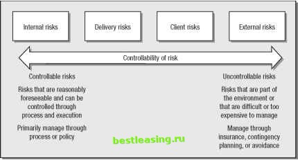 Exhibit 14.2 Relationship between Decision Making and Decision Outcomes While there are myriad risks encountered by the professional services firm, most of them can be generally categorized into four key areas: 1. Internal risks: Risks of undesirable outcomes that emanate from activities taking place inside the firm, including financial risks, employee risks, hiring risks, and systems risks. 2. Delivery risks: Risks related to the delivery of services to clients, whether on-site or off. 3. Client risks: Risks associated with the specific client but not a particular project. ![]() Exhibit 14.3 Professional Service Firm Risk Categories and Controllability 4. External risks: General risks such as natural disasters arising from being in business but not associated with a specific client, project, or internal operation. These risks can be placed on a rough continuum of controllability, as depicted in Exhibit 14.3. Internal risks tend to be the easiest to manage because they are related to the firms own operations and staff. Moving from left to right, delivery, client, and, finally, external risks become less and less easily controlled. In general, controllable risks can be addressed via the usual methods-to mitigate these problems, senior management can simply dictate process, policies, and terms geared to providing the appropriate amount of flexibility and risk reduction. As the risk areas move down the controllability continuum, the less effective process and policy become, and the more important insurance, contingency planning, and avoidance become. The best written processes and policies have little effect on an earthquake in progress. The following section details some sample risks that we have identified in each category, followed by a model for assessing risk and probability and evaluating options for mitigating risks. Sample Risks by Category The large number of risks faced by a specific professional services firm is difficult to inventory. The risks may vary by firm type (law versus medicine versus business consulting versus other), specific type of work, firm geography, client geography, staff type, project size, and even the personalities of the senior management team. We identify some of the possible risks in each category that may be faced by a professional services provider. While this list is clearly not comprehensive, it can serve as a good starter set or the foundation of brainstorming activities for firms to generate their own inventory of specific r isks in each categor y. Internal Risks Fraud/embezzlement: Internal theft by employees through fraud, embezzlement, or other intentional deceit Accounting error: Unintentional errors made by accounting staff that impact firm income statement, balance sheet, cash flows, general ledger, or other financial information Billing accuracy: Generation of bills that accurately reflect the proper fixed fees, time and material, and expense charges to clients Hiring: Hiring practices that ensure individuals of the highest ethics Records: Retention of accurate client records, working papers, financial statements, and other firm operating documents for appropriate length of time Corporate espionage: Loss of firm intellectual property, client information, or other proprietary information to competitors Systems and data security: Access to computing information systems and data restricted to authorized firm professionals and staff Systems backup and recovery: Reliable backups of data and rapid recovery from system crashes, errors, or inadvertently deleted information Physical security: Physical access to firm and client project sites and security of working papers and firm property Staff malfeasance: Theft of property, disparagement, or other deliberate misconduct by staff members that damages the firm Intellectual capital: Loss or theft of critical intellectual capital that distinguishes the firm or gives it competitive advantage or advanced capabilities Staff departures: Resignation of key internal staff due to retirement, dissatisfaction, outside recruiting, moves, or other reasons Succession: Firm senior and junior leadership succession plans Resource management: Pipeline of resources to be available for new business as well as proper management of resources during downtimes Delivery Risks Skills: Availability of the specific skills or knowledge on the team to successfully complete the project or service Scope: Well-defined parameters for project or service activities; clearly delineated goals and milestones and an unambiguous understanding of what will be regarded as successful completion in advance of commencement of the project or service Underbidding: Underestimate of level of effort, skill set required, or other resources required to complete the project Execution: Do-ability of the project (Do resources or skills exist within the firm, or any firm, for successfully delivering the project or service-also known as the bridge-to-the-moon problem?) Dependencies: Project or service tasks that depend on client initiatives, staff, timelines, dates, or other events not controlled by the firm Third-party reliance: Reliance on outside individuals or entities for completion of critical tasks in delivery of the project or service (e.g., third-party contract labor) Confidentiality: Inadvertent or purposeful release of critical client information not for public consumption causing embarrassment or damage to the client, particularly sensitive for public companies Travel/geography: Risks associated with the specific point of delivery of the product or service, including difficulty of getting to client site; 1 2 3 4 5 6 7 8 9 10 11 12 13 14 15 16 17 18 19 20 21 22 23 24 25 26 27 28 29 30 31 32 33 34 35 36 37 38 39 40 41 42 43 44 45 46 47 48 49 50 51 52 53 54 55 56 57 58 59 60 61 62 63 64 65 66 67 68 69 70 71 72 73 74 75 76 77 78 79 80 81 82 83 84 85 86 87 88 89 90 91 92 93 94 95 96 97 98 99 100 101 102 103 104 105 106 107 108 109 110 111 112 [ 113 ] 1