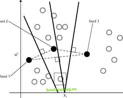 Unlike the traditional clothing size systems, the one Ashdown and Paal came up with is not an ordered set of graduated sizes where all dimensions increase together. Instead, they came up with sizes that fit particular body types. Each body type corresponds to a cluster of records in a database of body measurements. One cluster might consist of short-legged, small-waisted, large-busted women with long torsos, average arms, broad shoulders, and skinny necks while other clusters capture other constellations of measurements. The database contained more than 100 measurements for each of nearly 3,000 women. The clustering technique employed was the K-means algorithm, described in the next section. In the end, only a handful of the more than 100 measurements were needed to characterize the clusters. Finding this smaller number of variables was another benefit of the clustering process. K-Means Clustering The K-means algorithm is one of the most commonly used clustering algorithms. The K in its name refers to the fact that the algorithm looks for a fixed number of clusters which are defined in terms of proximity of data points to each other. The version described here was first published by J. B. MacQueen in 1967. For ease of explaining, the technique is illustrated using two-dimensional diagrams. Bear in mind that in practice the algorithm is usually handling many more than two independent variables. This means that instead of points corresponding to two-element vectors (xi,x2), the points correspond to n-element vectors (x!,x2, . . . , xn). The procedure itself is unchanged. Three Steps of the K-Means Algorithm In the first step, the algorithm randomly selects K data points to be the seeds. MacQueens algorithm simply takes the first K records. In cases where the records have some meaningful order, it may be desirable to choose widely spaced records, or a random selection of records. Each of the seeds is an embryonic cluster with only one element. This example sets the number of clusters to 3. The second step assigns each record to the closest seed. One way to do this is by finding the boundaries between the clusters, as shown geometrically in Figure 11.3. The boundaries between two clusters are the points that are equally close to each cluster. Recalling a lesson from high-school geometry makes this less difficult than it sounds: given any two points, A and B, all points that are equidistant from A and B fall along a line (called the perpendicular bisector) that is perpendicular to the one connecting A and B and halfway between them. In Figure 11.3, dashed lines connect the initial seeds; the resulting cluster boundaries shown with solid lines are at right angles to the dashed lines. Using these lines as guides, it is obvious which records are closest to which seeds. In three dimensions, these boundaries would be planes and in N dimensions they would be hyperplanes of dimension N - 1. Fortunately, computer algorithms easily handle these situations. Finding the actual boundaries between clusters is useful for showing the process geometrically. In practice, though, the algorithm usually measures the distance of each record to each seed and chooses the minimum distance for this step. For example, consider the record with the box drawn around it. On the basis of the initial seeds, this record is assigned to the cluster controlled by seed number 2 because it is closer to that seed than to either of the other two. At this point, every point has been assigned to exactly one of the three clusters centered around the original seeds. The third step is to calculate the cen-troids of the clusters; these now do a better job of characterizing the clusters than the initial seeds Finding the centroids is simply a matter of taking the average value of each dimension for all the records in the cluster. In Figure 11.4, the new centroids are marked with a cross. The arrows show the motion from the position of the original seeds to the new centroids of the clusters formed from those seeds. ![]() Figure 11.3 The initial seeds determine the initial cluster boundaries. ![]() Figure 11.4 The centroids are calculated from the points that are assigned to each cluster. The centroids become the seeds for the next iteration of the algorithm. Step 2 is repeated, and each point is once again assigned to the cluster with the closest centroid. Figure 11.5 shows the new cluster boundaries-formed, as before, by drawing lines equidistant between each pair of centroids. Notice that the point with the box around it, which was originally assigned to cluster number 2, has now been assigned to cluster number 1. The process of assigning points to cluster and then recalculating centroids continues until the cluster boundaries stop changing. In practice, the K-means algorithm usually finds a set of stable clusters after a few dozen iterations. What K Means Clusters describe underlying structure in data. However, there is no one right description of that structure. For instance, someone not from New York City may think that the whole city is downtown. Someone from Brooklyn or Queens might apply this nomenclature to Manhattan. Within Manhattan, it might only be neighborhoods south of 23rd Street. And even there, downtown might still be reserved only for the taller buildings at the southern tip of the island. There is a similar problem with clustering; structures in data exist at many different levels. 1 2 3 4 5 6 7 8 9 10 11 12 13 14 15 16 17 18 19 20 21 22 23 24 25 26 27 28 29 30 31 32 33 34 35 36 37 38 39 40 41 42 43 44 45 46 47 48 49 50 51 52 53 54 55 56 57 58 59 60 61 62 63 64 65 66 67 68 69 70 71 72 73 74 75 76 77 78 79 80 81 82 83 84 85 86 87 88 89 90 91 92 93 94 95 96 97 98 99 100 101 102 103 104 105 106 107 108 109 110 111 112 113 114 115 116 117 118 119 120 121 122 123 124 125 [ 126 ] 127 128 129 130 131 132 133 134 135 136 137 138 139 140 141 142 143 144 145 146 147 148 149 150 151 152 153 154 155 156 157 158 159 160 161 162 163 