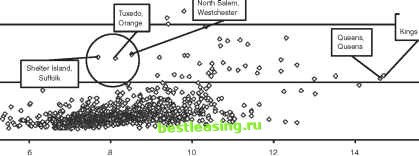 Population vs Home Value Manhattan, New York Scarsdale, Westchester <0 Brooklyn, ![]() Log Population Figure 8.1 Based on 2000 census population and home value, the town of Tuxedo in Orange County has Shelter Island and North Salem as its two nearest neighbors. One possible combination function would be to average the most common rents of the two neighbors. Since only ranges are available, we use the midpoints. For Shelter Island, the midpoint of the most common range is $1,000. For North Salem, it is $1,250. Averaging the two leads to an estimate for rent in Tuxedo of $1,125. Another combination function would pick the point midway between the two median rents. This second method leads to an estimate of $977 for rents in Tuxedo. As it happens, a plurality of rents in Tuxedo are in the $1,000 to $1,500 range with the midpoint at $1,250. The median rent in Tuxedo is $907. So, averaging the medians slightly overestimates the median rent in Tuxedo and averaging the most common rents slightly underestimates the most common rent in Tuxedo. It is hard to say which is better. The moral is that there is not always an obvious best combination function. Challenges of MBR In the simple example just given, the training set consisted of all towns in New York, each described by a handful of numeric fields such as the population, median home value, and median rent. Distance was determined by placement on a scatter plot with axes scaled to appropriate ranges, and the number of neighbors arbitrarily set to two. The combination function was a simple average. All of these choices seem reasonable. In general, using MBR involves several choices: 1. Choosing an appropriate set of training records 2. Choosing the most efficient way to represent the training records 3. Choosing the distance function, the combination function, and the number of neighbors Lets look at each of these in turn. Choosing a Balanced Set of Historical Records The training set is a set of historical records. It needs to provide good coverage of the population so that the nearest neighbors of an unknown record are useful for predictive purposes. A random sample may not provide sufficient coverage for all values. Some categories are much more frequent than others and the more frequent categories dominate the random sample. For instance, fraudulent transactions are much rarer than non-fraudulent transactions, heart disease is much more common than liver cancer, news stories about the computer industry more common than about plastics, and so on. Team-Fly® To achieve balance, the training set should, if possible, contain roughly equal numbers of records representing the different categories. TIP When selecting the training set for MBR, be sure that each category has roughly the same number of records supporting it. As a general rule of thumb, several dozen records for each category are a minimum to get adequate support and hundreds or thousands of examples are not unusual. Representing the Training Data The performance of MBR in making predictions depends on how the training set is represented. The scatter plot approach illustrated in Figure 8.2 works for two or three variables and a small number of records, but it does not scale well. The simplest method for finding nearest neighbors requires finding the distance from the unknown case to each of the records in the training set and choosing the training records with the smallest distances. As the number of records grows, the time needed to find the neighbors for a new record grows quickly. This is especially true if the records are stored in a relational database. In this case, the query looks something like: SELECT distance(),rec.category FROM historical records rec ORDER BY 1 ASCENDING; The notation distance() fills in for whatever the particular distance function happens to be. In this case, all the historical records need to be sorted in order to get the handful needed for the nearest neighbors. This requires a full-table scan plus a sort-quite an expensive couple of operations. It is possible to eliminate the sort by walking through table and keeping another table of the nearest, inserting and deleting records as appropriate. Unfortunately, this approach is not readily expressible in SQL without using a procedural language. The performance of relational databases is pretty good nowadays. The challenge with scoring data for MBR is that each case being scored needs to be compared against every case in the database. Scoring a single new record does not take much time, even when there are millions of historical records. However, scoring many new records can have poor performance. Another way to make MBR more efficient is to reduce the number of records in the training set. Figure 8.2 shows a scatter plot for categorical data. This graph has a well-defined boundary between the two regions. The points above the line are all diamonds and those below the line are all circles. Although this graph has forty points in it, most of the points are redundant. That is, they are not really necessary for classification purposes. 1 2 3 4 5 6 7 8 9 10 11 12 13 14 15 16 17 18 19 20 21 22 23 24 25 26 27 28 29 30 31 32 33 34 35 36 37 38 39 40 41 42 43 44 45 46 47 48 49 50 51 52 53 54 55 56 57 58 59 60 61 62 63 64 65 66 67 68 69 70 71 72 73 74 75 76 77 78 79 80 81 82 83 84 85 86 87 88 89 90 91 92 93 94 [ 95 ] 96 97 98 99 100 101 102 103 104 105 106 107 108 109 110 111 112 113 114 115 116 117 118 119 120 121 122 123 124 125 126 127 128 129 130 131 132 133 134 135 136 137 138 139 140 141 142 143 144 145 146 147 148 149 150 151 152 153 154 155 156 157 158 159 160 161 162 163 164 165 166 167 168 169 170 171 172 173 174 175 176 177 178 179 180 181 182 183 184 185 186 187 188 189 190 191 192 193 194 195 196 197 198 199 200 201 202 203 204 205 206 207 208 209 210 211 212 213 214 215 216 217 218 219 220 221 222 |