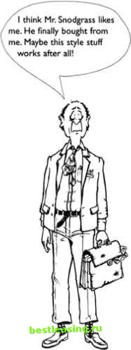 General Observations At this point you are probably getting a good appreciation for differences among the four behavioral styles. To further crystallize your understanding, I offer these real-world, everyday scenarios: Reading a Newspaper Socializers look for stories about the party they were at the previous night. They do things that get themselves in the paper. They scan the entire paper looking for interesting, current-event articles. They read the Entertainment section. Directors mainly read the headlines and the business section. They then turn to the sports section to read about athletic accomplishments. Thinkers call the newspaper if a word is incorrectly spelled or a story is inaccurate. Relaters look for a popular, current event story to discuss at the office water cooler. They check the obituaries to see if they know anyone. Golfing Socializers spend more time in the clubhouse talking and welcoming new members. Their almost a hole in one story is repeated frequently for the benefit of new members. Directors drive the cart and frequently try to play through. Thinkers keep score for the group and often refer to the rule book. They keep their clubs clean too. Relaters play regularly with the same foursome, usually offering to buy the beverages at the 19th hole. Grocery Shopping Socializers approach the fewer than 9 items checkout line, begin a conversation and compare the fun stuff in other shopping carts. They hold up the line by conversing with the cashier about upcoming holidays. Directors approach and barrel through the fewer than 9 items line with 15 items. After all, it was the shortest line. Thinkers approach the same checkout line wrestling with the correct thing to do. Are the eggs one item, or 12? They also count items in other carts and if they are over the limit, they become irritated. Relaters approach the fewer than 9 items line, count the items, and take comfort knowing they have only eight. If they have ten items, they move to another line. The Desk Socializers say: Im busy right now. Give me a few minutes and Ill get back to you. They dont know where the item is on their desk, but wont admit it. Directors have a clean desk, one file out at a time. Nothing else is on the desk. Even their telephone is on the credenza behind them. Thinkers say, Its the third report down in that pile. The desk is messy, with Post-It-Notes and files everywhere, but they know exactly where everything is. Relaters have everything in place, with the most impressive, business-related file in full view. A family picture and a picture of him or her shaking hands with a celebrity is in a prominent position. Relaters have a separate table for visitors rather than sitting at their desk. Cooking Socializers like to cook for groups. They prepare an extra place at the table just in case company stops by. They go out rather than cook for one. Directors cant cook without a microwave. They buy single portions. Cooking is viewed as a functional necessity versus a social event. Thinkers cook with a cookbook, a timer, and a measuring cup. Directions are followed exactly, with no deviations allowed. Relaters like to prepare a meal from scratch using a dozen standard recipes, taking the best from each and using the most popular ingredients. Elevators Socializers let everyone in, saying, Always room for one more, the more the merrier. They ignore the max limit sign and hand out business cards on the way down. Directors walk up, push the button, wait impatiently, get in and speak to no one. If running late, they take the stairs. Thinkers enter, but if its crowded they count the number of people. If over the limit, they will ask someone to leave. Relaters hold the door for others and ensure theyre the last ones on, in case its full. They dont want to crowd anybody. If so, they will wait for the next elevator. They smile at everyone on the trip down. The development of any new skill takes practice, and lots of it. The first step requires your personal commitment to this challenge and belief in the behavioral flexibility principles. I strongly encourage you to accept this opportunity to strengthen your relationship competencies and develop your interpersonal skills. Lets face it, you and your customer become the beneficiaries. I suggest you practice by identifying the styles among members of your family, coworkers, and friends. At your next social event, sit back and consciously observe people, their dress, their actions, how and with whom they converse, and so on. Youll be amazed at how much behavioral flexibility is real world and how people quickly reveal their predominant style. As a guideline to practice, ask yourself these questions: Are they introvert or extrovert? Do they appear to be direct or indirect? How are they dressed? What is their predominant quadrant? Remember, there is nothing mysterious about behavioral flexibility. Its about treating people the way they want to be treated. Everybody is different and no two customers are the same. Whether the person is dominant or shy, you will have the confidence and specific strategies for dealing successfully with that individual. Remember, people are not difficult-just different. After all, variety is the spice of ... sales! A footnote: Dont consider this chapter as your only resource to develop your behavioral flexibility skills. There are many good publications dedicated to the subject and I suggest you consider building your own library on this subject. See the bibliography.