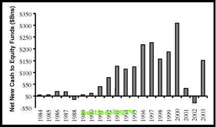 into stocks, it is extremely tough to kick the habit. The argument against being completely bullish on U.S. stocks is an argument of cognition against experience. My lizard brain still tells me to invest everything in stocks even though my analyses suggest otherwise. With my rational side, I am able to control my investments, but I cant stop my lizard brain from loving stocks. Love affairs, whether of the wallet or the heart, share common elements. In Shakespeare in Love the young playwright falls in love with cross-dressing Viola de Lesseps (played by Gwyneth Paltrow in her Academy-Award-winning role). Along their romantic road to an eventual happy ending, Shakespeare and his love must endure a set of challenges, including a very public engagement between Viola and Phillip Henslowe (played by Geoffrey Rush). Because Violas fiance is a lord, the whole gang ends up before Queen Elizabeth. Another lord in the audience asks the Queen how the story will end. She replies, As stories must when loves denied: with tears and a journey. While we have had some tears in our love affair with stocks, Figure 8.8 shows that there has been no journey away from stocks. Over the 10 years spanning 1994 to 2003, investors have placed an additional $1.5 trillion in long-term equity mutual funds. In the post-bubble world, the rhetoric surrounding stocks is somewhat tempered but there has been no movement away from stocks as an investment class. Before stocks represent outstanding value, I predict there will be many years during which investors are taking money out of stocks. It is the 1998 edition of Professor Siegels Stocks for the Long Run, that proclaims, Stocks are actually safer than bank deposits! Of course, two years after this edition was published, the S&P 500 lost half its value, and the NASDAQ lost 70% of its value. In the post-bubble, 2002 edition of Stocks for the Long Run the dust-jacket promotion of stocks being safer than bank deposits has been removed. Nevertheless, the message remains the same. In fact, Professor Siegels advice on investment allo- ![]() FIGURE 8.8 Americas Love Affair with Stocks Is Not Over Source: Investment Company Institute, 2004 Fact Book, Table 13 cation is worded identically in both pre- and post-bubble editions, Stocks should constitute the overwhelming proportion of all long-term financial portfolios. 19 Stocks for the long run is still the conventional wisdom. In their 2004 retirement planner, The Motley Fool website says, Fools opt for stocks above all else as our vehicle of choice for growth over the long term. (Devotees of the Motley Fool call themselves fools as a compliment.) Weve seen that Wall Street still recommends that about two-thirds of all investments should be in stocks. Furthermore, Americans own historically high levels of stocks. In a Shakespearean sense, weve had the tears of a bear market, but we have not had the voyage away from stocks that generally marks the end of an investment era. U.S. stocks are still the most loved of all investments. If the most loved investment proves to be the most profitable, it will be the first time in investing history. I conclude, in answer to Peter Borishs question, that buying stocks is indeed driving the financial car by looking in the rearview mirror. I still recommend a significant investment in stocks, not because I expect them to have higher returns than all other investments, but because stocks have tax advantages and generally unrecognized advantages as risk reducers. While I advocate a substantial investment in stocks, I am far more sanguine about their prospects than Professor Siegel or Wall Street. 1 2 3 4 5 6 7 8 9 10 11 12 13 14 15 16 17 18 19 20 21 22 23 24 25 26 27 28 29 30 31 32 33 34 35 36 37 38 39 40 41 42 43 44 45 46 47 48 49 50 51 52 53 54 55 56 57 58 59 60 61 62 63 64 [ 65 ] 66 67 68 69 70 71 72 73 74 75 76 77 78 79 80 81 82 83 84 85 86 87 88 89 90 91 92 93 94 95 96 97 98 99 100 101 102 103 104 105 |