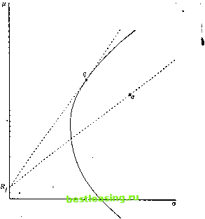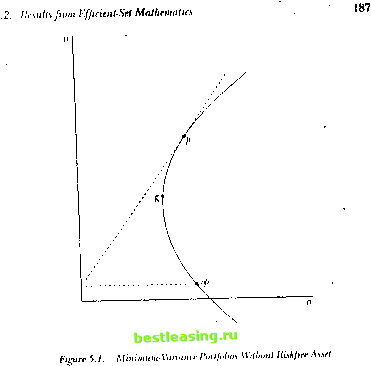 ?. / he Capital Asset Pricing Model where / denotes ihe asset and / denotes the lime period, / = 1.....7 . /. and / are die reali/.ed excess returns in time period / for asset i and the market portfolio, respectively. Typically the Standard and Poors 500 Index selves as a proxy for the market portfolio, and the US Treasury hill rate proxies for the riskfree return. The equation is most commonly estimated using 5 years of monthly data (7 = (id), (liven an estimate of the beta, the cost of capital is calculated using a historical average for the excess return on the S&P 500 over Treasury bills. This sort of application is only justified if the CAPM provides a good description of the data. 5.2 Results from Efficient-Set Mathematics In this section we review the mathematics of mean-variance efficient sets. The interested reader is referred lo Merlon (1072) and Roll (1077) for detailed liealinenls. An understanding of this topic is useful for interpreting much of the empirical research relating to the CAPM, because the key testable implication of die CAPM is that the market portfolio of risky assets is a mean-variaiii e efficient portfolio. F.flicicnl-set mathematics also plays a role in the analysis of niultifactor pricing models in Chapter (>. We start with some notation. Let there be Л risky assets with mean vector Ц and covariance matrix ft. Assume that the expected returns of al least two assets differ and that ihe covariance matrix is of full rank. Define u> as the (/Vx I) vector of portfolio weights for an arbitrary portfolio a with weights summing to unity. Portfolio a has mean return ; = w /. . and variance a- = u> ftu> . The covariance between any two portfolios a and b is oj (!ui,. (liven the population of assets we next consider minimum-vaiiance portfolios in the absence of a riskfree asset. Definition. Portfolio p is the minimum-variance portfolio of all portfolios with mean return щ, if Us fort folio weight vector is the solution to the following constrained optimization: ininu/ftw (5.2.1) subject to w/i = , , (5.2.2) wi. = 1. (5.2.3) To solve this problem, we form the I .agrangian (unction /., differentiate with respect lo w, set the resulting equations to zero, and then solve for u>. Tor the I .agrangian function we have /. = uiftui -f oi(/</, </t) + &>(l - oji). (5.2.4) 5.2. Results from Efficient-Set Mathematics where i is a conforming vector of ones and &\ and &-i are Iagrange multipliers. Differentiating L with respect to ш and setting the result equal to zero, we have 2Пы- 1/х-621 = 0. (5.2.5) Combining (5.2.5) with (5.2.2) and (5.2.3) we find the solution wp = g + h/Lt , (5.2.6) where g and h are (Nxl) vectors, j g = ~[B(Cl-U)-A(il-ln)] (5.2.7) . h = уаПи)-А(ГГ\)], (5.2.8) an<U = V, В = цГГ11Л, С = tft-U, and D - ВС - A2. Next we summarize a. number of results from efficient-set mathematics for minimum-variance portfolios. These results follow from the form of the solution for the minimum-variance portfolio weights in (5.2.6). Result 1: The minimum-variance frontier can be generated from any two distinct minimum-variance portfolios. I Result Г: Any portfolio of minimum-variance portfolios is also a minimum-variance portfolio. j Result 2: Let p and r be any two minimum-variance portfolios. The covariance of the return of p with the return of r is Covt/t .*,] = £(д,-£)(дг-£) + !. (5.2.9) Result 3: Define portfolio g as the global minimum-variance portfolio. For portfolio g, we have uK = -£П~,С (5.2.10) HK = ~ (5.2.П) < = -p (5-2.12) Result 4: For each minimum-variance portfolio p, except the global minimum-variance portfolio g, there exists a unique minimum-variance portfolio that has zero covariance with This portfolio is called the zero-beta portfolio with respect to p. 5. The Capital Asset Pricing Model Result 4: The covariance of the return of the global minimum-variance portfolio g with any asset or portfolio of assets a is Cov[/t,./4,1 = (5.2.13) Figure 5.1 illustrates the set of minimum-variance portfolios in the амепсе of a riskfree asset in mean-standard deviation space. Minimum-viriancc portfolios with an expected return greater than or equal to the e cpectcd return of the global minimum-variance portfolio are efficient portfolios. These portfolios have the highest expected return of all portfolios with an equal or lower variance of return. In Figure 5.1 the minimum-variance portfolio is g. Portfolio p is an efficient portfolio. Portfolio op is the zero-beta portfolio with respect lo p. It can be shown that it plots in the location shown in Figure 5.1, that is, the expected return on the zero-beta portfolio is the expected return on portfolio less the slope of the minimum-variance frontier ai p times the standard deviation of portfolio p. Result 5: Consider a multiple regression of the return on any asset or portfolio /t\, on the return of any minimum-variance portfolio Rp (except for the global minimum-variance portfolio) and the return of its associated zero-beta portfolio /4y,. Ra = Al + Ai4 + + For the regression coefficients we have Cov[ .К ] = 0. Cov[K ,/,] Pop : 1 - Pap (5.2.14) (5.2.15) (5.2.1(3) (5.2.17) (5.2.18) (5.2. H)) We next introduce a riskfree asset into the analysis and consider portfolios Composed of a combination of the N risky assets and the riskfree asset. Will) a riskfree asset ihe portfolio weights of the risky assets arc not constrained to sum to 1, since (1 - u/t) can be invested in the riskfree asset. where P p is the beta of asset a with respect to portfolio p. Result 5: For the expected return of a we have , fia = (i - P p)n,f + P plip. ![]() Given a riskfree asset with return Rj the minimum-variance portfolio with expected return Hp will be the solution to the constrained optimization min о/Пи, (5-2.20) subject (о As in the prior problem, we form the I .agrangian function /., differentiate it with respect to w. set the resulting equations to zero, and then solve for w. For the Lagrangian fu