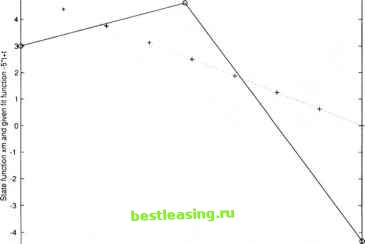 to solve the integration of the objective function (3.2). Input the vectors xm(: 1) and sm. Step 5. Call SCOM function nqq with the stated Input function for the oscillator problem to solve the differential equation d(J(w(t)))/dt = - Tabulate results in as the components of vector Step 6. Take the last result of the vector jm as the value of the objective function, and calculate the constraint function of Minimization program which is Algorithm 3.3: Input function for second order differential equation (see project2 3.m in Appendix A.2) Step 1. Initialization. Input scaled time t, subinterval counter it, the length of total subintervals hs and vector um. Set the value to parameters T, (set B for(3.18) and (3.19) in the next section). Set the number of the total subintervals nn = 1 /hs. Step 2. Obtain the number of the big time intervals by nb = nn/ns for establishing the control policy. Step 3. Set the control policy as vector и = [u(l),u(2),..., u(nb)] with alternating value 1 and -1, see (3.8); the control only jumps at the end points of the big time intervals. Step 4. Construct the right side of the transformation equation for time pt in (3.10): pt = ф (r ) = nb~ 1 * (ptj+i - ptj) * (r - nb * (j - 1 )) + ptj , for ih < r < (г + l)h, ptj < t < ptj+\. Step 5. Obtain the right sides of the differential equations by using the transformations in (3.13) and (3.14): x\(t) = х\\ф(т))(й/йт)ф{т) = T* x2{t)*nb*(ptj+\ -ptj), x2(t) = х2(ф(т))(ё/ёт)ф(т) = T*(-xi(t) + Uj - Г * х2(т)) * nb * {ptj+i - ptj) . Algorithm 3.4: Input function for the oscillator problem (see project2 4.m in Appendix A.2) Step 1. Initialization. Input scaled time subinterval counter it, the length of total subintervals hs, vector xm of values of first state function at switching times, and also the initial state z and vector sm. Set the number of the total subintervals nn = 1 /hs. Step 2. Use linear interpolation to get the estimate xmt of the state, in a time between grid points where Step 3. Add up the time intervals sm to get time tj in (3.9): t - <p(r) - h~1*(ti+i-ti)*{t-h*(i-\))+ti, forih < т < {i + l)h, ii < t < ij+i- Step 4. Construct the right side of the equation (3.9) to obtain time variable Step 5. Calculate the integrand in (3.15) at scaled time t: J = yj 5. Financial Control Pattern The financial dynamic system introduced in Section 3.2 is a second-order differential equation, and the forcing function /indexforcingfunction u(t) takes values such as -2, 2, -2,2,..., switching between them at optimal switching times determined by an optimization calculation. Note if is restricted to choose two values -2 and 2, then both the patterns -2,2, -2,2,... and 2, -2,2, -2,... have to be computed. The comparison of the solutions of these two patterns will be discussed in next section. This research studies a set of bang-bang controls that jump on the extreme points of the feasible area. However, since the sequences of the control switching are not defined, all the sequences of the control patterns need to be computed and analyzed. A numerical example in financial modeling is shown next. 6. Computing the Financial Model: Results and Analysis In this section, the control u(t) is set to be -2 and 2. The solutions of two different initial starts of control are discussed and compared. We can formulate the financial optimal control problem as follows: subject to: Xl(t)+T: u(t) takes value - 2,2,... or 2, -2,... in successive time intervals (3.19) ![]() ![]() The target value of the target = Ы - 5.
