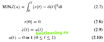 and the differential equation changes from x(t) = m(x(t),u(t),t) to: For T is fixed and large, the denominator satisfies 1 - (Зт > 1 - j3 > 0. If Г is a variable to be optimized over, then 1 - (3 replaces the variable T, in an interval 0<e<l-/3<. For example, in a fixed-time optimal control problem, if there is some distinguished time !1 € [0,T], then an additional constraint r(x(T)) = 0 must be satisfied. A transformation of t £ [0, T] to те [0, \] maps T to \, thus to a subdivision point. In particular: r = h/f (0<t< f), t = 2TY (0 < r < h At the piecewise-linear transformation is not differentiable, and the co-state may be discontinuous. 4. A Computer Software Package Used in this Study The computer package SCOM ([18, 2001]) is a tool to solve step-function optimal control problems on MATLAB 5.2, on a Macintosh computer. It is noted that a program written and compiled in C language will run faster than a MATLAB program for the same computation. However MATLAB is a matrix computation language, so it requires much less programming work in calculating matrix operations on MATLAB than other computer languages, such as C language and Fortran, etc. The program constr is a constrained optimization package in MATLABs Toolbox, based on a SQP (sequential quadratic programming) method. constr will use gradients if supplied; otherwise it will estimate gradients by finite difference. In non-linear programming methods, the SQP method is very successful. The method closely mimics Newtons method for constrained optimization, just as it is done for unconstrained optimization. Using a quasi-Newton updating method , an approximation is made of the Hessian of the Lagrangian function at each major iteration. It is then used to generate a Quadratic Programming sub-problem whose solution is used to form a search direction for a line search procedure. In the research, we build another subroutine to be called as the objective function in constr . The state functions in this research were solved by the differential equation solver nqq in the SCOM package (see details in Appendix C). When results of the state come out on the grid-points, the objective function J(u) becomes a function of N variables that can also be calculated by nqq . When the subroutines for the state functions and objective function are constructed, the MATLAB program constr is then used to obtain the optimal solution of the problem with respect to optimal switching times. In the program, the control и is approximated by a step-function. 5. An Optimal Control Problem When the Control can only Take the Value 0 or 1 From the point of view of control theory, the bang-bang optimal control happens when the systems of the optimal control problems are linear in control. The Nerlove-Arrow model [63, 1962] is an example of a bang-bang control following a singular arc control. Now, introduce a typical bang-bang optimal control problem. We consider an optimal control problem: subject to: ![]() In this case, the statefunction z(.) is assumed piece-wise smooth, and the control u(t) jumps many times between 0 and 1 during the time interval [0, T]. Here, simplify the problem to T = 1. Now use a step-function: <t) = \ + (-l)fck ) - \\ к = 0,1,2,..., n u(0) = 0 or 1 to approximate the control Here the target function is: Let It. Observe that if having instead u(t) € [0,1], then u(t) = \ (0 < t < 1) would be optimal, with But if must be either 0 or 1, then u(t) will jump many times between 0 and 1. Suppose a further restriction is made that, for some given integer n, time interval [0, 1] is divided into n equal subintervals [0,1/n], [1/n, 2/n],..., [j/n, (j+l)/n],..., [(n-l)/n, 1]; takes a constant value (1 or 0) on each subinterval [j/n, (j + l)/n], (j = 0,1,..., n - 1). So if u(t) takes the values in this pattern 1,0, 1, 0, 1,0 on the successive subinterval, then each subintervals contributes l/(12n3) to as But the optimal value J = 0 is not reached, unless an infinite number of jumps are allowed. Now a term К * n is added to the objective function. (2.7) is modified as follows: MIN F = J(u) + kn= [ [x(t) - <f>{t)]2dt + Kn Here, K is the cost of changing control and n is the numberoftimeintervals. The objective function of the optimal control problem becomes a cost function. The algorithms in the next section are used for solving these kind of optimal control problems. 6. Approaches to Bang-Bang Optimal Control with a Cost of Changing Control In this section, the computational methods for solving bang-bang optimal control problems with a cost of switching control are introduced. Simply modifying certain parts of these methods can satisfy a class of similar problems. Suppose the number N of switching times is fixed by N = nn, say switching times h,t2, . ,tnn. Now consider (2.7) as a function of the switching times, say Then the minimum of this function is computed, starting from a small value of N. Here the components of the vector are the lengths between each switching time. The vector um must satisfy the upper and lower bounds 0 and 1, thus 0 < tj-\ < tj < 1, and a constraint Y.i=\ umi = 1 must be satisfied. The vector represents the values of the state func- tion takes at each switching time. The algorithms are as follows: Algorithm 2.1 Main Program (see project1 1.m in Appendix A.1) Step 1. Initialization. Set the maximum number of function evaluations, par, which is the system parameter of the MATLAB constr function, and also another system parameter par(13) = 1 (1 represents the number of the equation constraint in the minimization problem), and a vector of the parameters which are used in the whole subroutines, par = [number of the state components, number of control components, nn= number of total subintervals], arbitrary starting lengths of switching time intervals 1 2 3 4 5 6 7 8 [ 9 ] 10 11 12 13 14 15 16 17 18 19 20 21 22 23 24 25 26 27 28 29 30 31 32 33 34 35 36 37 38 39 40 41 42 43 44 45 46 47 48 49 50 51 52 53 54 55 56 57 58 59 60 