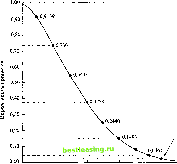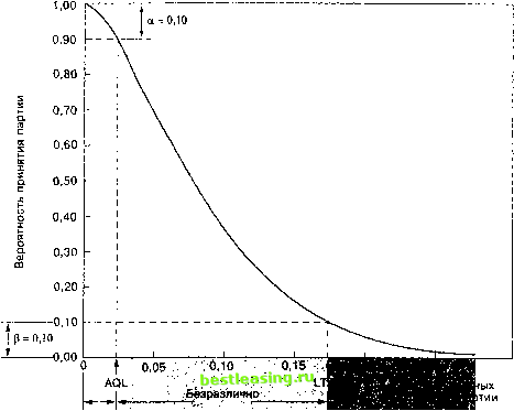 1,00 а. с о; о а ш m ![]() Хорошо Качество партии (доля дефектов) Рис. 9п-2. Чем круче кривая, тем более точно распознавание Так, заказчики хотят получить уровень качества, равный приемлемому уровню качества (или выше), и они готовы работать с партией качества не хуже допустимого процента дефектов,-но они предпочитают забраковывать партии с долей дефектных изделий выше допустимого процента. Вероятность того, что будет принята партия с процентом дефектных изделий больше допустимого, известна как риск потребителя или бета-риск, или как вероятность ошибки II типа. Вероятность браковки партии с приемлемым уровнем качества известна как риск производителя, альфа-риск, или как вероятность ошибки I типа. Большинство планов выборки предусматривает уровень риска производителя 5% и риска потребителя 10%, хотя используются и другие комбинации значений. Эмпирическим методом можно разработать план с определенными значениями альфа и бета по данным приемлемого уровня качества и допустимого процента брака. Тем не менее, для расчета размера выборки и критерия приемлемости для планов выборки широко применяются стандартные разработки, такие как таблицы MIL-STD. Рисунок 9п-3 изображает кривую рабочих характеристик с величинами приемлемого уровня качества, допустимого процента риска, риска потребителя и риска производителя. Для лучшего понимания проблемы полезно самим выстраивать на графике кривые рабочих характеристик. Предположим, вам необходимо построить кривую для следующих условий: выборка из п= 10 элементов берется из партии N=2000 элементов, и партия принимается в случае нахождения не более чем с= 1 дефекта. Так как размер выборки много меньше размера партии, целесообразно использовать биномиальное распределение для определения вероятностей приема партий при различном уровне качества выборок. Для наглядности изложения мы приводим здесь часть совокупной биномиальной таблицы (Приложение, таблица D). Потребительский риск - вероятность того, что будет принята партия, содержа- щая процент брака больше I допустимого. I I Риск производителя - ве- j роятность того, что будет за- бракована партия, содержащая приемлемый уровень качества. ![]() Хорошо Плохо Рис. 9п-3. Приемлемый уровень качества (AQL) показывает приемлемые партии, допустимый уровень дефектов (LTPD) - некачественные партии Доля дефектов, р п X 0,05 0,10 0,15 0,20 0,25 0,30 0,35 0,40 0,45 0,50 0,55 0,60 10 О .5967 .3487 .1969 .1074 .0563 .0282 .0135 .0060 .0025 .0010 .0003 .0001 0=1 i 1 .9139 .7361 .5443 .3758 .2440 .1493 .0860 .0464 .0233 .0107 .0045 .0017 j 2 .9885 .9298 .8202 .6778 .5256 .3828 .2616 .1673 .0996 .0547 .0274 .0123 3 .9990 .9872 .9500 .8791 .7759 .6496 .5138 .3823 .2660 .1719 .1020 .0548 Для использования таблицы выберите различные уровни качества партии (значения р вверху таблицы), начинающиеся с 0,05 и найдите вероятность приема партии с данной долей дефектных изделий (т.е. для данного случая - вероятность нахождения одного и менее дефектных изделий). Для р=0,05 вероятность одного и менее дефектов равна 0,9139. Для партии с 10% дефектных изделий (т.е. долей дефектов 0,1), вероятность одного и менее дефектных изделий снижается до 0,7631 а для 15% дефектных изделий в партии вероятность приема этой партии составит 0,5443. То есть, вы берете значения вероятностей в строке для с=1. Нанеся эти значения (т.е. 0,05 и 0,9139; 0,1 и 0,77631) на график и соединив их,вы получите кривую рабочих характеристик, показанную на рис. 9п-4. При п > 20 и р < 0,05 для построения кривой рабочих характеристик целес