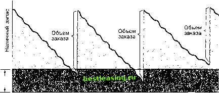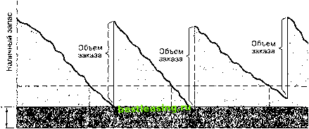 = ciiOI + LT} -ь zaj4or+LT -А, (11-20) где 01 = интервал заказа (интервал времени между заказами) А = наличные запасы в момент возобновления заказа Как в предыдущих моделях, мы считаем, что спросе период защитного интервала подчиняется нормальному распределению. ческий контроль (т.е. физическая проверка) уровня запасов непосредственно перед отправкой нового заказа, чтобы определить его объем. Причины использования модели с фиксированным интервалом заказа В некоторых условиях очень удобно использовать модель заказа с фиксированным интервалом. Бывает, что сама политика поставщика поощряет заказы через фиксированные интервалы времени. В любом случае, определенная группировка заказов помогает сэкономить на стоимости доставки. Кроме того, не всегда возможно постоянно отслеживать уровень наличных запасов. В эту категорию попадают многие мелкие предприятия розничной торговли (например, аптеки, небольшие продовольственные магазины). Для них реальный выход использовать модель фиксированного интервала времени, которая требует лишь периодических проверок уровня запасов. Определение объема заказа Если нормы потребления (спрос) и время исполнения заказа не изменяются, то модель с фиксированным интервалом и модель с фиксированным объемом действуют совершенно одинаково. Различия проявляются только в том случае, если модели действуют в изменяющихся условиях. Подобно модели ROP (точки возобновления заказа), данные две модели могут иметь отклонения только в уровне спроса, только в сроках исполнения заказа, или же в обоих этих показателях. Мы рассмотрим ситуацию с переменным спросом и постоянным временем исполнения заказа (поскольку это наиболее частая ситуация, а также для большей простоты изложения). На рисунке 11-15 приведено сравнение между моделью с фиксированным объемом заказа и фиксированным интервалом заказа. В модели с фиксированным объемом, момент возобновления заказа определяется количественно (точка возобновления заказа). В модели с фиксированным интервалом возобновление заказа определяется временем. Соответственно, модель с фиксированным интервалом должна иметь защиту от исчерпания запасов (резервный запас) на время исполнения заказа и последующий цикл заказа, - в то время как системе с фиксированным объемом нужен резервный запас только на время исполнения заказа: дополнительные заказы можно сделать в любой момент и быстро получить (время исполнения заказа). Следовательно, модель с фиксированным интервалом больше нуждается в резервном запасе, чем модель с фиксированным объемом. Обратите внимание, например, что во время второго цикла заказа при системе с фиксированным интервалом приходится использовать достаточно большой объем из резервного запаса (см.рис.11-15). Объем заказа в модели с фиксированным интервалом определяется следующим образом: Объем Ожидаемый спрос Резервный Наличный запас заказа = в течение + запас - в момент защитного возобновления интервала заказа Резервный запас ![]() t f Размещение Получение t f Размещение Получение t t Размещение Получение заказа заказа (Защитный интервал = Время исполнения заказа) А. Возобновление фиксированного объема заказа Время Резервный запас ![]() t f Размещение Получение заказа заказа t I Т t Размещение Получение Размещение Получение заказа заказа заказа заказа -01- Защитный интервал Врем