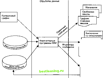всегда необходимы. С другой стороны, некоторые детали могут использоваться только при производстве одного вида машин. Следовательно, потребность в таких деталях существует только тогда, когда изготавливается машина данного вида, что может иметь место один раз за восемь, девять недель; в остальное время потребность в них равна нулю. Таким образом, этот спрос - спорадический. По этим причинам детали независимого спроса должны быть постоянно в наличии, а запас по деталям зависимого спроса необходимо возобновлять непосредственно перед началом производственного процесса, в котором они потребуются. Более того, предсказуемость использования деталей зависимого спроса означает, что нет практически никакой необходимости создавать для них резервный запас. Рис. 13-1 показывает различия между производственными запасами предметов зависимого и независимого спроса. Независимый спрос ![]() Время о о а с: О Зависимый спрос (спрос по кусочкам ) Время ![]() Время ![]() Время Рис. 13-1. Сравнительное представление для независимого и зависимого спроса Общий обзор MRP Планирование материальных потребностей производства (MRP) - это система на основе компьютерной базы данных, которая разработана для управления и планирования производственных запасов зависимого спроса (т.е. сырьевых материалов, запчастей и сборочных узлов). План производства определенного количества конечной продукции переводится на язык запросов на компоненты и сырьевые материалы, используя производственные данные, чтобы определить когда и сколько заказывать. Таким образом, требования на конечную продукцию определяют требования на компоненты нижнего уровня, кото- I Планирование материаль-I ных потребностей производства - компьютеризованная информационная система для своевременных заказов и планирования материально-производственных резервов зависимого спроса. рые разбиваются на плановые периоды (например, недели), так чтобы заказ, производство и сборка были распланированы для своевременного завершения конечного изделия, а производственные запасы поддерживались на разумно низком уровне. MRP - это не только технический прием, но своего рода философия - и настолько же контроль за производственными ресурсами, как и общий подход к планированию. Исторически сложилось, что заказ деталей и планирование сборочных изделий наталкивались на две трудности. Первая из них - это огромный объем работы, чтобы создать плановые графики, отследить пути большого количества деталей и компонентов, и справиться с изменениями в графиках и заказах. Другая проблема - отсутствие разграничения понятий зависимого и независимого спроса. Слишком часто методы и приемы, разработанные для изделий независимого спроса, использовались для работы со сборочными изделиями, что приводило к созданию излишних производственных запасов. Соответственно, графики и планирование производственных запасов представляли основную проблему для производителей. В 70-е годы производители начали осознавать важность разграниченния между элементами зависимого и независимого спроса, и стали подходить к этим двум категориям по-разному. Многие фирмы сейчас взвалили ношу по ведению учета и определению материальных потребностей производства на компьютеры, используя MRP. Большая заслуга в рекламе MRP и обучении потенциальных пользова