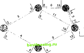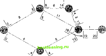 Определите: а. Длину каждого пути б. Критический путь j в. Ожидаемую продолжительность проекта. { г. Количество резервного времени для каждого пути. i Решение: а. Как показано в следующей таблице, длина путей -18 недель, 20 недель и 14 не- j дель. J б. Самый длинный путь (20 недель) - 1 -2-5-6, поэтому он - критический путь. \ в. Ожидаемая продолжительность проекта равна длине критического пути (т.е. 20 1 недель). s г. Мы находим резерв времени для каждого пути, вычитая длину этого пути из длины I критического пути, как это показано в последнем столбце таблицы. (Обратите внимание: иногда желательно знать резервное время для каждого действия. Сле- j дующий раздел описывает метод получения таких показателей.) j Путь Длина пути (недели) Резервное время J 1-2-4-5-6 8+6+3+1 = 18 20-18=2 I 1-2-5-6 8+11 + 1=20 20-20=0 1-3-5-6 4+9+1 = 14 20-14=6 Длина критического пути Алгоритм вычисления Сетевые диаграммы многих реальных проектов намного больще, чем простая сеть, показанная в предшествующем примере; они часто содержат сотни и даже тысячи действий. Поскольку необходимые вычисления могут стать чрезвычайно сложными и потребовать много времени, большие сетевые диаграммы, как правило, анализируются компьютерными программами, а не вручную. Интуитивный подход, показанный выше, не поддается компьютеризации, потому что во многих случаях последовательности путей не так легко распознать. Вместо этого, используют алгоритм для получения четырех видов информации о действиях в сети: ES, самое раннее время, когда действие может начаться, принимая, что все предшествующие действия начинаются насколько возможно раньше. EF, самое раннее время, когда действие может быть законченно. LS, самое позднее время (самый последний срок), когда действие может начаться, нс задерживая проект. LF, самое позднее время (самый последний срок), когда действие может закончиться, не задерживая проект. Когда эти значения определены, их можно использовать, чтобы найти: 1. Ожидаемую продолжительность проекта. 2. Резервное время. 3. Действия на критическом пути. Три следующих примера показывают, как вычислить эти значения, используя диаграмму предшествования примера 1. ПРИМЕР 2 Вычислите самое раннее начальное время и самое раннее конечное время для каждого действия в диаграмме, показанной на рисунке 16-4. Решение: Начнем с размещения скобок в обоих концах каждого начального действия: Мы определяем и помещаем в скобки самое раннее начальное время для каждого действия ES, и самое раннее конечное время EF. Проделайте это для всех действий, начиная с левой стороны диаграммы предшествования и перемещаясь в правую сторону. Когда для действия определено ES, EF можно найти, сложив время действия t с ES: ES -н t = EF. Для всех начальных действий берите ES = 0. Таким образом, действиям 1-2 и 1-3 назначаются нулевые значения ES. Это позволяет вычислить EF для каждого из этих действий: EFi.2 = 0-H8 = 8 EFi.3 = 0-H4 = 4 ;©-© Время EF для одного действия становится временем ES для действия, которое еле- . дует за ним в диаграмме. Следовательно, поскольку у действия 1-2 время EF=8, то действия 2-4 и 2-5 имеют время ES тоже равное 8. Аналогично, у действия 3-5 время ES=4. ![]() © У/ 417 \л Это позволяет вычислить время EF для данных действий: EF2.4 = 8-H6 = 14 EF2.5 = 8-H 11 = 19 I ЕРз.5 = 4+ 9 = 13 ![]() I Время ES для действия 4-5 является временем EF для действия 2-4, которое равно 1 14. Используя это значение, находим EF для действия 4-5; оно равно 17: I EF4.5 = 14 + 
