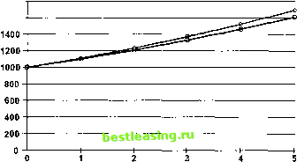 lim (1 + j/m) = eJ . г.. \nS/F /1 1СЧ ...... = nrina.m- - Если нет специального калькулятора, значения логарифмов также находят по таблицам. Сушествует несколько правил, позволяющих быстро рассчитать срок удвоения первоначальной суммы для конкретной процентной ставки. Правило *72 : Тогда для наращенной суммы получаем S=PeJ . Здесь (3.9) .с = е - (3.10) Значения наращенной суммы S можно вычислять с помощью финансового калькулятора или находя значения е и других требуемых величин в специальных таблицах. Очевидно, что непрерывный способ начисления процентов дает максимальную величину наращенной суммы при прочих равных условиях (т. е. при одинаковых и,Р). Аналогично случаю простых процентов полученные формулы можно преобразовывать, выражая одни величины через другие, в зависимости от того, что известно, а что требуется найти. Так, из формулы (3.1) получаем = Sa, (3.11) (1 + д Напомним, что, как и в случае простых процентов, определение современной величины суммы 5 пазьшается дисконтированием. Коэффициент дисконтирования а является величиной, обратной коэффициенту наращения, т. Q. ky аI. Формула (3.11), а также соответствующие формулы для случая простых ставок ссудного процента и для учетных ставок дают легко понять, что текущий финансовый эквивалент будущей денежной суммы тем ниже, чем отдаленнее срок ее получения и чем выше норма доходности. Также из формулы (3.1) имеем Из формулы (3.6): тп Го J=m{ V-l). (3.12) (3.13) Применяя операцию логарифмирования к обеим частям формулы (3.1), получаем In (1 + /,) Подобным же образом из формулы (3.6) получаем формулу: п (3.14) Правило *69 (более точное); + 0,35. Здесь, однако, следует иметь в виду, что при выводе этих правил используются математические формулы, дающие верный результат не для любых значений входящих в них величин. Например, выражение 1/х < х (х > 0) неверно при х < 1. Данные правила дают весьма точный результат при небольших значениях До = 100(%) отклонения достаточно малы и ими можно пренебречь. При процентной ставке, равной, например, 120%, погрешность (для правила 69 ) составляет 5,2% (для правила 72 она будет больше) и растет с ростом 1. При этом срок удвоения, полученный по правилу 69 , будет больше, чем в действительности, а по правилу 72 - меньше. В качестве примера найдем срок удвоения капитала при годовых ставках: а) 20% и б) 110% по формуле (3.14) и по правилам б9 и 72 . а) л = In 2/In 1,2 = 3,8 года, или и = 72/20 = 3,6 года, или и = 69/20 + 0,35 = 3,8 года; б) = in 2/1п 2,1 = 0,93 года, или п = 72/110 = 0,65 года, или п = 69/110 + 0,35 = 0,98 года (разница с точным значением - 18 дней). Следующие примеры иллюстрируют использование полученных формул. Пример 10 Первоначальная вложенная сумма равна 200 ООО руб. Определить наращенную сумму через пять лет при использовании простой и сложной ставок процентов в размере 28% годовых. Решить этот пример также для случаев, когда проценты начисляются по полугодиям, поквартально, непрерывно. Решение По формуле (1.7) для простых процентных ставок имеем 5 = 200 ООО (1 + 5 0,28) = 480 ООО (руб.). По формуле (3.1) для сложных процентов; S - 200 ООО (1 + 0,28) - 687 194,7 (руб.). По формуле (3.6) для начисления по полугодиям; S 200 ООО (1 + 0,14)° - 741 444,18 (руб.). Из той же формулы для поквартального начисления: , S = 200 ООО (1 + 0,07)° = 773 936,66 (руб.). По формуле (3.9) для непрерывного начисления: 5= 200 000 е* = 811 ООО (руб.). Пример 11 Первоначальная сумма долга равна 50 ООО ООО руб. Определить наращенную сумму через 2,5 года, используя два способа начисления сложных процентов по ст