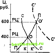 ГЛАВА 2 ТАКТИКА ФИНАНСОВОГО МЕНЕДЖМЕНТА 2.1. Финансы маркетинга. Основы принятия ценовых решений Финансовый менеджмент далеко не безразличен к маркетинговой функции предприятия, ведь мудрость ценовых решений, правильная ориентация на те или иные сегменты рынка, интенсивные усилия по продвижению товаров, контроль над реализацией и своевременная коррекция маркетинговой политики являются одними из важнейших слагаемых финансового успеха предприятия. Для принятия ценовых и прочих финансовых решений предприятию необходима в первую очередь информация о спросе на его товар (услуги). Убедиться в эффективности этой информации можно, сопоставляя различные варианты предположительной дополнительной выручки ог наращивания производства и сбыта с дополнительными затратами на маркетинг. Важнейшими инструментами маркетинговых исследований являются кривые спроса и предложения товара. Попробуем с помощью условного примера установить зависимость величины спроса (С) от цены реализации (Ц) и построить кривую спроса (см. рис. 1): по цене 800 руб. за штуку покупателя находят всего 100 единиц товара, а снижение цены до 600 руб. повышает спрос до 200 единиц. Но кто же удовлетворяет этот спрос? Производитель (продавец). Поэтому анализ рынка невозможен без построения кривой предложения (рис. 2), показывающей, сколько товара и по каким ценам может быть предложено производителем. Так, по цене 100 руб. за штуку производитель предлагает 100 единиц товара, по цене 400 руб. - 300 единиц, а по цене 800 руб. - уже 500 единиц. Это и не удивительно, ведь высокая цена побуждает производителя к наращиванию вьшуска продукции. Итак, у нас есть две кривые, отражающие поведение покупателей и продавцов на рынке. Ясно, что оптимальный вариант - ра- ![]() ![]() 100 200 К, ШТ. Рис. 1. Кривая спроса 100 300 500 К, шт. Рис. 2. Кривая предложения венство величин спроса и предложения, а они равны в точке пересечения наших кривых (рис. 3.). Точке рвновесия спроса и тфед-ложения соответствует цена изделия 400 ? рублей за штуку - такая цена называется равновесной (РЦ): равновесная цена рационализирует спрос покупателя, передавая ему информацию о том, на какой объем потребления данного товара он может рассчшывать; равновесная цена подсказывает производителю (продавцу), какое количество товара ему следует изготовить и доставить на рынок; равновесная цена несет в себе всю информацию, необходимую производителям и потребителям: изменение равновесной цены является для них сигналом к увеличению (уменьшению) производства (потребления), стимулом к поиску новых технологий. Таким образом, равновесная цена вполне успешно служит для автоматического регулирования производства. Российский рьшок характеризуется сегодня постоянными сдвигами кривой спроса вверх вследствие увеличения доходов определенных категорий юридических и физических лиц. Соответственно, поднимается и равновесная цена (рис. 3.). На сдвиг кривой спроса вверх влияет также изменение поведения покупателей в преддверии роста цен - фактор инфляционного ожидания. Если, к примеру, ожидается увеличение цены соли, то естественно предположить, что спрос на соль увеличится. Отл1етим и другие факторы, влияющие на высоту кривой спроса: изменение количества населения, смена вкусов и предпочтений, политические и природные потрясения и т. д. ![]() Обозначения: , , : Ц - цена това