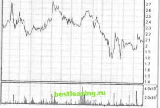 Рис. 15.3. Окно Все сделки в торговом терминале SmartTrade Пользователь, привыкший следить именно за сделками, имеет возможность определить цвет, каким показывать разные типы сделок. Например, разные цвета могут быть заданы для сделок, прошедших по максимуму дня, по минимуму, по ценам спроса, по ценам предложения, по цене, превышающей предьгдупгую, и т.д. Кроме того, по желанию можно выводить в окно биржевой референс сделки и ее дату. Линейный график цены акции Если окна котировок и очередь заявок характеризуют текущее положение рынка, то окно Все сделки показывает развитие процесса торговли во времени. В этом смысле оно наиболее близко к графической форме представления информации. Простейшим графиком, показывающем, как менялись цены на бумагу с течением времени, является так называемый линейный график. Общепринято линиями соединять точки закрытия. Не запрещено также провести линии через цены открытия, дневные максимумы или минимумы. Но в любом случае остальные три значения цены при этом теряются . Поэтому линейное представление не очень интересно. Оно применяется только при отображении на графике последовательности всех сделок. Если на графике наносятся все сделки, то такой график называется тиковым (от английского слова tick, что означает минимальное изменение цены и времени). Другая причина использования линейных графиков - это представление цены на большом временном интервале. Такие графики используются лишь для общих иллюстраций, когда значение остальных трех цен (открытия, максимума и минимума) представляется несущественным. В качестве примера ниже приведен линейный график изменения цены акций ОАО ИркутскЭнерго (рис. 15.4). ![]() ШГ.01 сен 01 окт01 дек,01 янв.02фев.и2мар,02май.02июн.02и1ол.02авг.и2 сен.02 Рис. 15.4. Линейный график изменения цены акций ОАО ИркутскЭнерго с 15 августа 2001 г. по 27 сентября 2002 г. Далее мы рассмотрим два наиболее часто применяемых на практике типа графиков, которые отображают все четыре значения цены. Речь идет о представлении графиков в барах и японских свечах. Эти представления реализованы во многих информационно-аналитических системах (например, Metastock, LiveCharts, SmaitTrade) и графических прикладных программах, в частности Excel. Представление цен на графиках с помощью баров Прежде чем строить графики с помощью баров или японских свечей необходимо договориться о дискретизации времени. Дело в том, что каждый бар или свеча представляют историю за определенный интервал или период времени. Эта история представляется теми же самыми четырьмя ценами, но примененными непосредственно к началу этого интервала (открытие, О), к максимальному и минимальному значениям (максимум, Н; минимум, L) и к соответствующему окончанию интервала (закрытие, С). Сам интервал может быть при этом любой - неделя, месяц, квартал. Или день, час, полчаса, 5 минут, 1 минута и т.д. В зависимости от выбора длительности интервала график называется дневным (интервал времени - один день), часовым , недельным , пятиминутным и т.д. В общем случае отдельный бар, изображающий состояние рынка в описываемый момент времени, состоит из вертикальной линии и двух полочек слева и справа от нее, как показано на рис. 15.5. 150 Мнксимумцем Мкксимуыцен ![]() Закрытие = Минимум цен Рис. 15.5. Представление основных цен временного интервала на баре Вертикальная линия соединяет минимальную и максим