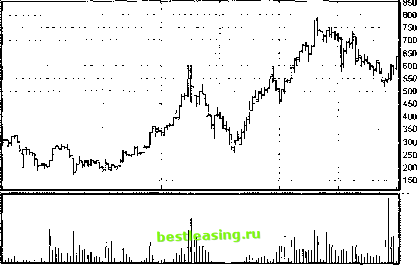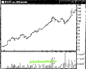 ! ГМКННик5ав(Недеяя) ГГГ ![]() 1 0x10 5 0x10 июл.ОО но я ,00 апр 01 сен ,01 янв 02 июн,02 окт.02 Рис. 18.2. Недельные графики акций ГМК Норильский никель . Пример компании, акции которой можно отнести к защитным бумагам К группе оборонительных тесно примыкают так называемые доходные акции. Они имеют близкие свойства поведения цены. Доходными называются акции тех эмитентов, по которым выплачиваются щедрые дивиденды. Мы уже говорили о таких бумагах в гл. 17. Понятие щедрые дивиденды означает, что дивидендная доходность D, определяемая формулой: £> = 100% Div/(P- N), не менее чем в два-три раза превосходит дивидендную доходность прочих акций. Другими словами, щедрые дивиденды означают, что срок, за который окупаются вложения в акции, составляет порядка 20 лет и менее. Поэтому доходные акции в отличие от оборонительных бумаг инвесторы приобретают на более длительный срок. Повторим, что основной интерес к доходным акциям проявляют консервативные инвесторы, для которых важен стабильный поток платежей в будущем, а не стоимость купленного актива. Доходные бумаги не проявляют сильных тенденций к росту. Соответственно интерес к таким бумагам у спекулянтов и краткосрочных инвесторов весьма ограничен. А это, в свою очередь, ведет к уменьшению ликвидности бумаги и меньшей волатильности. Последний факт очень важен, поскольку вложения в такие активы ведут к уменьшению рисков инвестора по портфелю инвестиций. 182 Если цена доходной акции по каким-либо причинам падает, то это неизбежно ведет к росту дивидендной доходности D в соответствии с вышеприведенной формулой. При определенных уровнях дивидендной доходности у консервативных инвесторов возникает желание перевести часть средств из облигаций в такие довольно дешевые и доходные акции. Возникающий арбитраж не дает цене на доходные бумаги опуститься ниже определенного уровня, что, в свою очередь, служит дополнительной гарантией сохранности инвестиций. Разумеется, этот определенный уровень зависит от соотношения риска между государственными облигациями и бумагами данной корпорации. На российском рынке в качестве примера доходных акций можно привести привилегированные бумаги ОАО Транснефть (ММВБ: Транснф ап), дневной график которых представлен на рис. 18.3. Щ Т р нсн* апШеш.) I FT*! Г~~\