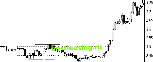 щ рао Еэедо шш) i ![]() 2 35 ; 1640 юзо 1230 Йвт 1620 1820 1 210 Рис. 45.2. Ход торгов акциями РАО ЕЭС России 24 сентября 2002 г. Закрытие предыдущего дня сопровождалось небольшим снижением котировок. Открытие было нейтральным. С утра игроки обозначили , границы коридора цен и вплоть до 17:00 торговля велась в этом диапазоне. Ничто не предвещало бури, разразившейся в конце торговой сессии Начальный импульс дня соответствует закрытию с понижением и нейтральному открытию следующего дня. Закрытие overnight-позиций привело к тому, что цены вернулись на рубежи предыдущего дня и далее медленно снижались к цене открытия. Здесь начались покупки, и торговля перешла в исключительно узкий игровой диапазон. Такое бывает иногда, когда на рынок приходит крупный покупатель. В 17:00 продавцы отступили, и начался стремительный рост цен. Котировки пробили верхнюю границу утреннего коридора. В игр) включились профессиональные спекулянты, и под занавес торговой сессии игроки развили мощное бычье ралли. В результате цена бумаг РАО ЕЭС за час выросла на 0.20 руб., что составило более 8%! Это в четыре раза превышает границы утреннего коридора. На рис. 39.1, напротив, изображено стремительное падение цены в заключительный час торгов. Начальный импульс дня соответствовал достаточно нейтральному закрытию накануне и открытию с отрывом наверх. В соответствии с нашей таблицей такая комбинация свидетельствует в пользу быков. Действительно, ничто не предвещало медвежьего закрытия торговой сессии. Торговля весь день велась в границах очень узкого утреннего коридора. Затем под давлением продаж покупатели отступили и началось безудержное падение цены, продолжавшееся вплоть до конца торгового дня. Результат впечатляет - заключительное движение цены почти в десять раз превзошло границы утреннего коридора. Приведенные примеры показывают, что возможна стратегия игры, основанная на торговле диапазона в предпочтительном направлении. Суть ее состоит в том, что при игре в прорыв верхней границы диапазона открывается .длинная позиция вблизи нижней границы с близким приказом стоп-лосс. При приближении к верхней границе половина позиции закрывается. Это обусловлено более вероятной возможностью отката цен от уровня сопротивления. При откате вниз позиция восстанавливается до первоначальной вблизи нижнего уровня, а при прорыве диапазона наверх - прибыль приносит оставшаяся часть длинной позиции. Таким образом, производятся активные спекуляции половиной позиции внутри торгового диапазона. А в случае прорыва коридора наверх вторая половина длинной позиции удерживается до конца роста. Если первоначальный план оказался неверным, выход осуществляется без больших потерь. В случае если предполагается прорыв торгового диапазона вниз, то необходимо открывать короткую позицию у верхней границы и откупать половину позиции вблизи нижней. Таким образом, в подавляющем большинстве случаев в течение первого часа торгов определяются первоначальные границы возможного ценового коридора и его ширина. Далее основную часть торговой сессии спекулятивная торговля ведется в этом диапазоне цен со смещением вниз или вверх в зависимости от текущего дисбаланса спроса и предложения либо без смещения в случае нейтрального внешнего фона и сбалансированности сил покупателей и продавцов. Если в процессе дневных 