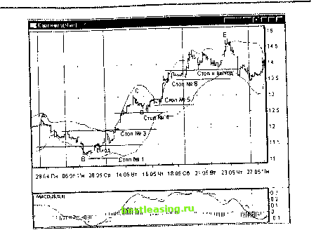 Помимо вышеописанных методов управления рисками - построения пирамид и усреднения цены - существуют более изощренные техники: фиксированно-фракционная система управления позицией, фиксированно-пропорциональная торговля и некоторые другие, с которыми читатель может ознакомиться в литературе [Джонс, 2001]. Ниже в гл. 50 мы опишем еще один способ управления риском позиции при игре вдоль трендов и при торговле диапазона в предпочтительном направлении. А сейчас перейдем к обсуждению правил закрытия позиций. Общие правила выхода из позиции Общераспространенное заблуждение большинства игроков состоит в том, что для закрытия позиций могут быть применены те же способы и методы, что и для открытия, только использованные наоборот . Например, если покупка совершается по какому-либо сигналу перепроданности, то продажа должна осуществляться по обратному аналогичному сигналу перекупленности. Следует сказать, что это заблуждение, которое не может привести к торговле с устойчивым по времени положительным результатом. В чем же причина? Дело в том, что закрытие позиции - это устранение всех рисков по данной позиции, а открытие противоположной позиции - это принятие определенных рисков. Естественно, причины, заставляющие совершать эти два совершенно различных по последствиям действия, должны быть разными. Например, если цена акции выросла и вступила в фазу консолидации, то очевидно, что это скорее повод зафиксировать прибыль и выйти из длинных позиций, чем открыть короткие. Таким образом, выход из позиции - это далеко не то же самое, что вход в противоположную позицию. При выходе из позиции необходимо строго соблюдать ряд правил, первейшими из которых являются дисциплина и следование плану торгов. Это позволит уберечь нервы от непоследовательных метаний и капитал от убытков, полученных в результате непродуманных действий. Первое обстоятельство, которым должен руководствоваться трейдер при выходе из позиции, - это сохранность капитала, и лишь затем он должен заботиться о рентабельности, т.е. о доходах. Существует несколько методов и резонов выхода из позиции, которые разнятся в зависимости от рыночной ситуации и стиля торговли. Условно закрытие позиции может быть осуществлено либо системным, либо несистемным образом: 1. Системный выход есть выход из позиции в результате срабатывания стоп-приказа. При этом не важно, произошла ли фиксация убытков при неблагоприятном движении цены против позиции или сработал стоп в области прибыльности. 2. Несистемный, сознательный выход из позиции используется в дополнение к системному стоп-приказу при сравнительно небольшом минусе или при наличии нереализованной прибыли. Фиксация убытков по стопу происходит, как правило, в первые торговые интервалы после открытия позиции, в случае если трейдер не угадал с выбором точки входа и времени открытия. Эти проблемы, равно как и проблемы движения скользящего стопа, уже обсуждались и ниже рассматриваться не будут. Обратимся к сознательному выходу из позиции при сравнительно небольшом минусе или при наличии плюса. В этом случае выход - это минимизация риска потери нереализованной прибыли и максимизация будущих доходов. Соответственно, существуют два мотива закрытия длинной позиции: а) вероятность снижения цен возрастает и становится больше, чем вероятность 