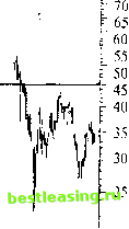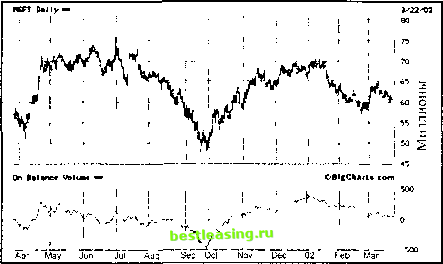 ![]() г- ЕГ ОСТ 97 ©StocVChai*s con Vol t SMA 60) . ft Mil lit I] il II JFehruanJ mill .in .til .A I III liillJillliillL R t i f in i т трп-г гн-rT1 1~TI Г ~г pni [May June July [August - -i GO Рис ] 1 5 Обратное движение с двумя вершинами на примере акций Gillette Голова Правое плечо Левое плечо JI ![]() Линия тренда Вырез ![]() I I I I I I II I I I I ПП I I I I и п-fill ГТГ1 I М I 1 1 I I I II I I ГТ ГГГП~Р Т I И I I 1 I ГГТТ1 Fet Мэг рг Мз\ Ji Н)у ррр jOrt мгл jo ei I Jinn Рис 116 Чарт обратного движения голова- плечи в отношении акции интернет-компании С/Net Объем торговли Это количество купленных или проданных акций под определенное обеспечение. Некоторые специалисты по техническому анализу изучают данные объемов торговли для того, чтобы выявить тенденции развития рынка. Теоретически объем торговли первичен по отношению к цене акций, стоимость которых снижается при активной продаже. Рассмотрим два показателя, которые помогают отследить изменения объема торговли. Эта методика оценки эффективна, если колебания курса конкретной ценной бумаги или акций на рынке в целом характеризуются повышательной тенденцией. Снижение этих показателей может свидетельствовать о возможности падения курса цены соответствующей ценной бумаги или цен на финансовом рынке в целом. Показатель объема торговли на основе чарта волатильности цен (показатель OBV). Джо Гранвилл впервые ввел в обиход это понятие в 1963 г., изложив его в книге New Strategy of Daily Stock Market Timing for Maximum Profits. Суть метода сводится к следующему. Если цена закрытия ценной бумаги устанавливается на верхнем уровне, показатель объема торговли прибавляется к кумулятивному итоговому значению. В противоположном случае он вычитается из кумулятивного итогового значения (рис. 11.7). При использовании данного метода, нужно обращать внимание на показатель расхождения. Например, если курс акции продолжает расти на фоне понижательной тенденции, выявленной при помощи показателя OBV, значит, в конечном счете он тоже снизится. Как ясно из рис. 11.7, в период с мая по июнь показатель OBV имел понижательную тенденцию, в результате некоторое время спустя произошло снижение курса акций Microsoft. Линия аккумуляции/распределения (показатель ADL). Этот показатель разработан одним из ведущих специалистов по техническому анализу рынка Марком Чайкиной. Признавая его достоинства, он тем не менее счел возможным усовершенствовать данный метод технического анализа. ![]() Рис П 7 Показатель OBVна примере акций Microsoft При использовании показателя OBV Чайкин столкнулся со следующей проблемой Предположим, цена закрытия акций XYZ составляет 50 долларов за каждую На следующий день цена открытия - 45 долларов, а к концу торгового дня резко возра стает и к закрытию равна 49,9 доллара Если применять метод, в соответствии с которым объем сделок накладывается на график цены финансового инструмента, такой торговый день должен считаться отрицательным, несмотря на очевидный рост курса акции В основе данного метода лежат не показатели цены закрытия, а следующая система критериев □ Если цена закрытия устанавливается на высоком уровне, значение линии аккумуляции/распределения равно нулю □ Если цена закрытия устанавливается между высоким и средним уровнем ( посредине ), значение линии аккумуляции/распределения колеблется в диапазоне от нуля до единицы □ Если цена закрытия устанавливается выше среднего, но ниже верхнего уровня, значение линии аккумуляции/ 1 2 3 4 5 6 7 8 9 10 11 12 13 14 15 16 17 18 