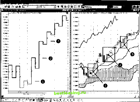 6. ИНДИКАТОР ИШИМОКУ И КАТИ Описание метода Каги и основных формаций, применяемых в торговле при работе по этому методу, приведено в приложении к данной книге. Поэтому читателями, не знакомым с данным методом, мы рекомендуем сначала обратиться к приложению. В текущем разделе остановимся на принципах использования индикатора Ишимоку с Каги. Основная идея заключается в том, что сигналы индикатора Ишимоку должны подтверждаться сигналами Каги. На рисунке 22 приведены дневные графики EUR/USD. На левом из них цены отображены в виде графика Каги с размерностью бокса 50 пунктов. На правом - индикатор Ишимоку с параметрами 9, 26 и 52. Цифрами отмечены следующие моменты: 1. Отбой от облака (линии SenkouA) и изменение толщины линии на графике Каги. 2. Коррекция на графике Каги не опускается ниже середины линии. При пробое предыдущего максимума (2) возникает сигнал на покупку. На свечном графике с индикатором Ишимоку данный момент также отмечен цифрой два. 3. Коррекция и очередной сигнал, схожий с сигналом два. ![]() Рис. 22. EUR/USD, дневной. Каги (бокс 50 пунктов), Ишимоку (9, 26, 52). Пример подтверждения графиком Каги сигналов Ишимоку На рисунке 23 представлены дневные графики GBP/USD, размер бокса для Каги равен 50 пунктам, параметры Ишимоку - 9, 26 и 52. Цифрами отмечены следующие моменты: 1. Образование модели Пинцет на графике Каги, но цена находится в облаке индикатора Ишимоку. 2. Двухуровневый прорыв на графике Каги и пробой линии SenkouB индикатора Ишимоку. Последующая коррекция до линии SenkouB. На графике Каги коррекция не опускается ниже середины предыдущей линии. Отбой от линии SenkouB с образованием свечной конфигурации. 3. Пробой предыдущего максимума на графике Каги. На свечном графике уровень пробоя отмечен также цифрой три. 1 2 3 4 5 6 7 8 9 10 [ 11 ] 12 13 14 15 16 17 18 19 20 21 22 23 24 25 26 27 |