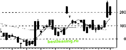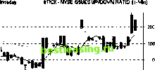Г 100 Рисунок 4-8. Составной индекс NASDAQ (дневной график). Sep 00 S&P 500 1ШЖ) у rSPU(l-S*pOB S&P500 [1-Mffil ![]() T...T..T..T..T.T.., r.T.T T.4...T ,.. r 11:30 11:35 11:40 11:45 1150 11:35 12:00 NYSE ISSUES UP/DOWN RATIO ![]() 11:25 11:30 11:35 11 40 1145 11:50 1155 12-00 DOW JONES INDUSTRIALS INDEX m jinou-dowjcnes industf als jdek (1-m i) ![]() 125 11:30 1135 11:40 11:46 11:50 11:55 12:00 i i 11:30 1135 11:40 1145 11:50 11*5 12:00 Рисунок 4-9. Основные рыночные индикаторы (внутридневные графики). Индикатор TICK. Этот индикатор (рис. 4-10) измеряет соотношение повышающихся и понижающихся акций на Нью-Йоркской фондовой бирже (но не NASDAQ) в каждый момент времени. Часто его символ в базах данных выглядит как $Т1СК. Базовая линия TICK проходит через 0, означающий, что повышающихся и понижающихся акций в данный момент поровну. Если индикатор TICK имеет большое положительное значение, скажем +500, означающее, что растущих бумаг на 500 больше, чем понижающихся, то рынок в целом тоже должен идти вверх. Столь же верно и обратное: если индикатор TICK = -500, то мы ожидаем, что индекс Доу-Джонса тоже будет снижается. Крайние значения TICK часто можно рассматривать как индикатор разворота. Например, значение TICK от +800 до +1000 или от -800 до -1000 (что случается очень редко) показывает, что скоро можно ждать разворота рынка. Так что, если индикаторТЮК поднимается к значениям +800... +1000, приготовьтесь к тому, что в следующие 5-15 минут начнется распродажа. NYSE ISSUES UP/DOWN RATIO Intraday f TICK - NYSE ISSUES UP/DOWN RATIO (1 -Min) ![]() 11:25 11:30 11:35 11:40 11:45 11:50 11:55 12:00 Рисунок 4-10. Внутридневной индикатор STICK Нью-Йоркской фондовой биржи. Индекс Армса {The Arms Index). Этот индекс, известный KaKTRIN ($TRIN) (рис. 4-11), был назван в честь его изобретателя Ричарда Армса. Формула индекса включает как соотношение, так и цену повышающихся и понижающихся акций. Базовая линия TRIN проходит через 1, означающую, что рынок движется исключительно горизонтально. На сильно растущем рынке TRIN будет иметь высокие положительные значения, а на резко падающем - будет выражаться очень малым или даже близким к нулю числом. TRIN - это прежде всего хороший индикатор разворота тренда. Высокие значения TRIN, как и TICK, указывают на близкий разворот рынка. Но для TRIN отклонением от нормы будут значения выше 3. Поэтому когда я вижу, что TRIN поднимается так высоко, я внутренне настраиваюсь на открытие коротких позиций. Обратное тоже верно; значения TRIN, близкие к нулю, показывают, что можно открыть длинную позицию. $TRIN Intraday $TRIN (t-Min) ![]() I-I-r-i-i-j-I-I-I-i-I-I-I-I-i-I-I-I-I-I-I-I-I-i i i-i-I-I-i i i-I-I-г 1:25 11:30 11:35 11:40 11:45 11:50 11:55 12:00 Рисунок 4-11. Внутридневной индекс Армса ($TRIN). 1 2 3 4 5 6 7 8 9 10 11 12 13 14 15 16 17 18 19 20 21 22 23 24 25 26 27 28 29 30 31 32 33 34 35 36 37 38 39 40 41 42 43 44 [ 45 ] 46 47 48 49 50 51 52 53 54 55 56 57 58 59 60 61 62 63 64 65 66 67 68 69 70 71 72 73 74 75 76 77 78 79 80 81 82 83 84 85 86 87 88 89 90 91 92 93 94 95 96 97 98 99 100 101 102 103 104 105 106 107 108 109 110 111 112 113 114 115 116 117 118 119 120 121 122 123 124 125 126 127 128 129 |