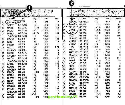 CSCO Bid 66 7/16 #Bid 1 High 67 1/16 1/2 I +2 5/8 100 Ask 66 1/2 #Ask 5 Low 63 7/8 11:09 Vol 22631200 Spread 1/16 Close 63 7/8 ![]() Рисунок 8-5. Несколько Chippies на биде. Секрет исчезающих ярусов Теперь, зная спрос и предложение, вычислив топор и учтя роль Chippies и Islanders в ситуациях высокой и низкой ликвидности, вы сможете правильно определить, как изменятся котировки в ближайшее время. В этом может помочь и знаниетак называемого секрета исчезающих ярусов . Удивительно, как мало трейдеров знают об этой технике, а еще меньшее число ис- Cisco Systems. Inc. csco Bid 66 7/16 #Bid g High 67 3/4 66 1/2 f+2 5/8 2300 Ot 10:55 Ask 66 1/2 Vol 18192300 #Ask 3 Spread 1/16 Low 63 7/8 Close 63 7/8