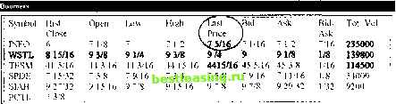 Рисунок 10-14. Маркет-мейкеры создали временный подъем и продают на нем. Ключевые положения Когда я торгую по инерционным стратегиям, то опираюсь на три основные концепции. Это мои надежные убеждения, помогающие сформировать ожидания. 1. Объем определяет тенденцию Я свято верю в объем. Это очень эффективный инструмент (и один из самых простых). Внутридневные трейдеры нередко перегружены сложными техническими индикаторами, скользящими средними и громоздкими алгоритма- ми. Но иногда полезно сделать шаг назад и вернуться к основам, к базисным индикаторам рынка. Объем (число акций, купленных и проданных за день) - как раз и является одним из таких индикаторов. Еще не так давно день со 100-миллионным объемом на Нью-Йоркской фондовой бирже вызвал бы у брокеров благоговение и трепет. Но в последние несколько лет объем значительно вырос, что стало естественным результатом большего количества денег в биржевом обороте вследствие резкого роста активов взаимных и хеджевых фондов. После новых рекордов Доу, объем NYSE сделал шип и недавно достиг 1 млрд. акций в день. Объем NASDAQ регулярно превышает 2 млрд. акций в день. Во все времена инвесторы пользовались показателем объема, чтобы понять, куда идут акции. В отличие от большинства инструментов, используемых техническими аналитиками, этот показатель найти легко: эти данные есть практически на любом финансовом web-сайте или в любой ежедневной газете, печатающей биржевые сводки (обычно он выражен в тысячах акций), и, конечно же, на экране вашей торговой программы. Жизнь трейдера не может быть поставлена в зависимость от какого-то одного индикатора. Однако понимание объема позволяет глубже проникнуть в суть поведения акций и определить их общее самочувствие . Самое важное правило, какое вам надо знать, состоит в следующем: объем предшествует цене. Как правило, объем начинает изменяться прежде, чем изменится цена акций. Прелесть этого индикатора в его гибкости. Внутридневные изменения объема можно использовать для определения краткосрочных движений цен, а изменения за несколько дней - для определения 2-3-дневной тенденции. Но прежде чем учиться интерпретировать объем, надо знать средний дневной объем данных акций. Раньше активные трейдеры были вынуждены записывать объемы торгуемых ими акций каждый день, чтобы рассчитать средние величины. Теперь вы можете получить эту информацию через Интернет в режиме on-line. Например, вы можете воспользоваться услугой, предоставляемой Yahoo Finance (http: quote.yahoo.com). На этом сайте вы можете найти средний объем по любым акциям. Вообще говоря, изменение цены при сравнительно малом объеме предполагает отклонение, тогда как изменение цены при высоком объеме предвещает подлинную тенденцию. И трейдер смотрит объем, чтобы определить ценовую тенденцию. Поскольку инерционный трейдинг предполагает торговлю в направлении сильной тенденции, один из лучших моментов для покупки наступает тогда, когда акции направляются вниз при малом объеме (в отсутствие новостей), после того как недавно росли при более высоком. Последнее означает, что продажа слабая, так как те, кто хотел продать акции, уже продал их, а остальные продолжают держать. Покупатели могут еще вернуться на рынок, если увидят, что цена стабилизировалась. Также неплохо продавать при высоком объеме, когда акции направляются вверх