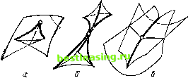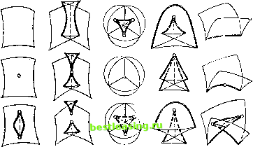 рестраиваются в момент, когда плоскость проходит черев вершину хвоста. Перестройка (метаморфоза), происходящая при этом, в точности такая же, как метаморфоза волнового фронта на плоскости (например, при распространении возмущения внутрь эллипса). Мы можем описать метаморфозы волновых фронтов на плоскости следующим образом. Рассмотрим наряду с основным пространством (в данном случае плоскостью) еще пространство-время (в данном случае трехмерное), Распространяющийся на плоскости волновой фронт заметает в пространстве-времени некоторую поверхность. Оказывается, саму эту поверхность всегда можно рассматривать как волновой фронт в пространстве-времени ( большой фронт ). В случае общего положения особенностями большого фронта будут ласточкины хвосты, ребра возврата и самопересечения, расположенные в пространстве-времени общим образом относительно изохрон (образованных одновременными точками пространства-времени). Теперь уже нетрудно сообразить, какие метаморфозы могут испытывать мгновенные волновые фронты на плоскости в случае общего положения; это перестройки сечений большого фронта изохронами. Изучение метаморфоз волнового фронта при его распространении в трехмерном пространстве сводится таким же образом к исследованию сечений большого (трехмерного) волнового фронта в четырехмерном пространстве-времени трехмерными изохронами. Возникающие метаморфозы изображены на рис. 36. Изучение метаморфоз волновых фронтов было одной из задач, из которых возникла теория катастроф, однако даже в случае трехмерного пространства катастрофисты не сумели с ней справиться; рис. 36 появился лишь в 1974 г., когда в теории особенностей были разработаны новые методы (основанные на теории кристаллографических групп симметрии). Наряду с волновыми фронтами процесс распространения возмущений описывается при помощи систем лучей. Например, распространение возмущений внутрь эллипса можно описать при помощи семейства внутренних нормалей к эллипсу (рис. 37). Это семейство имеет огибающую. Огибающая семейства лучей называется каустикой (т, в, жгущей , так как в этих местах свет концентрируется). Каустика хорошо видна на внутренней поверхности чашки, освещенной солнцем. Радуга на небе также объясняется каустикой системы лучей, прошедших с полным внутренним отражением через каплю воды (рис. 38). Каустика эллиптического фронта имеет четыре точки возврата. Эти особенности устойчивы: близкий к эллипсу фронт определит каустику с такими же особенностями. Все более сложные особенности каустик при малом шевелении рассыпаются на стандартные особенности: точки 1 2 35 ![]() Рис. 36. Типичные перестройки волновых фронтов в трехмерном пространстве ![]() Рис. 37. Каустика Рис. 38. Теория радуги Де- эллипса карта возврата (локальное уравнение - х2 = у ) и точки самопересечения. Се чема нормалей к поверхности в трехмерном пространстве также имеет каустику. Эту каустику можно построить, отложив на каждой нормали к поверхности радиус кривизны (поверхность, вообще говоря, имеет в каждой точке два различных радиуса кривизны, так что на нормали получается две точки каустики). 2* 35 Нелегко представить себе, как выглядят каустики даже простейших поверхностей, например трехосного эллипсоида. Каустики общего положения в трехмерном пространстве имеют лишь стандартные особенности.